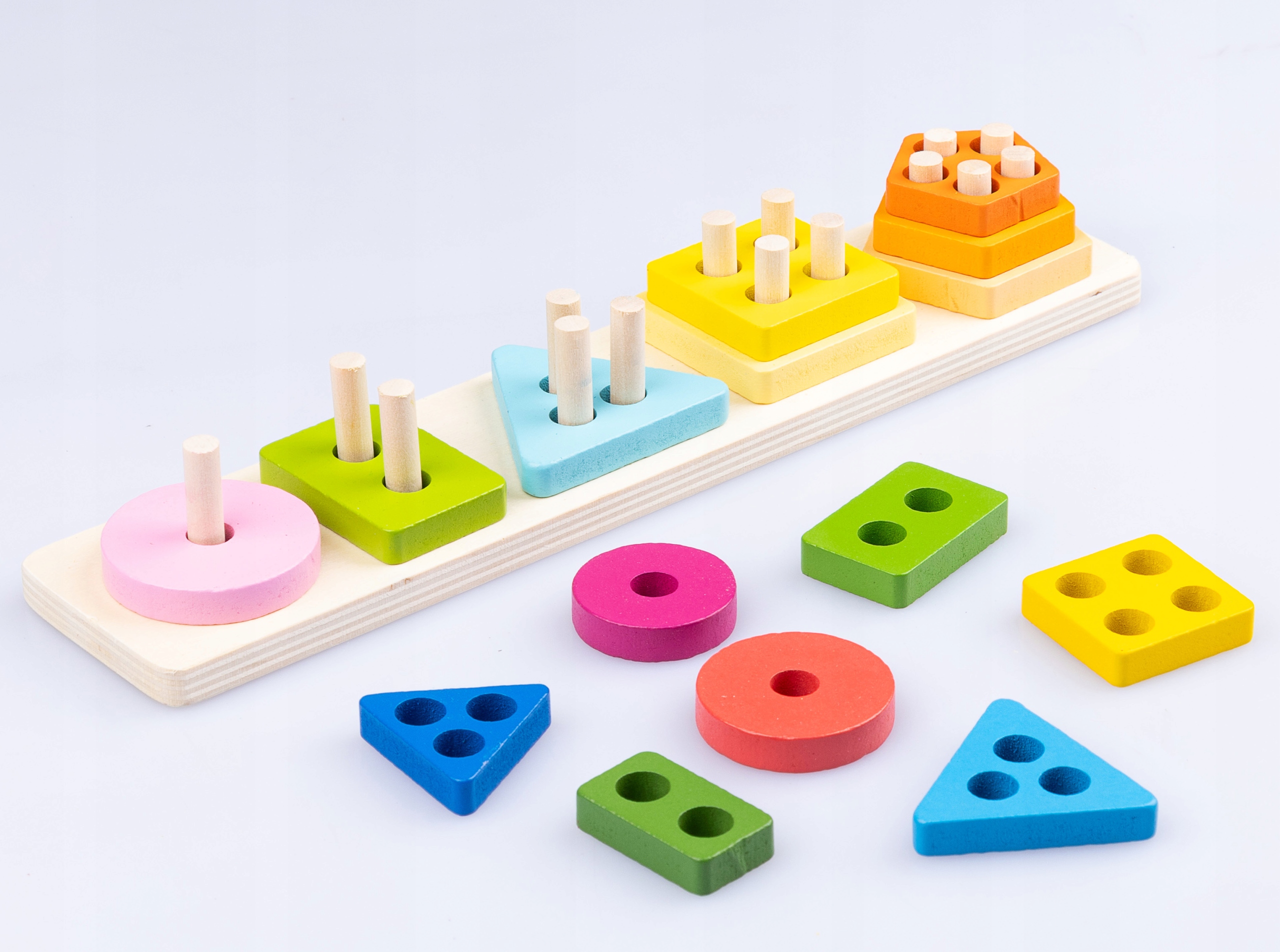 Ця дерев'яна головоломка — ідеальний подарунок для дітей, яким сподобаються творчі ігри та радість відкриття нових форм і кольорів.