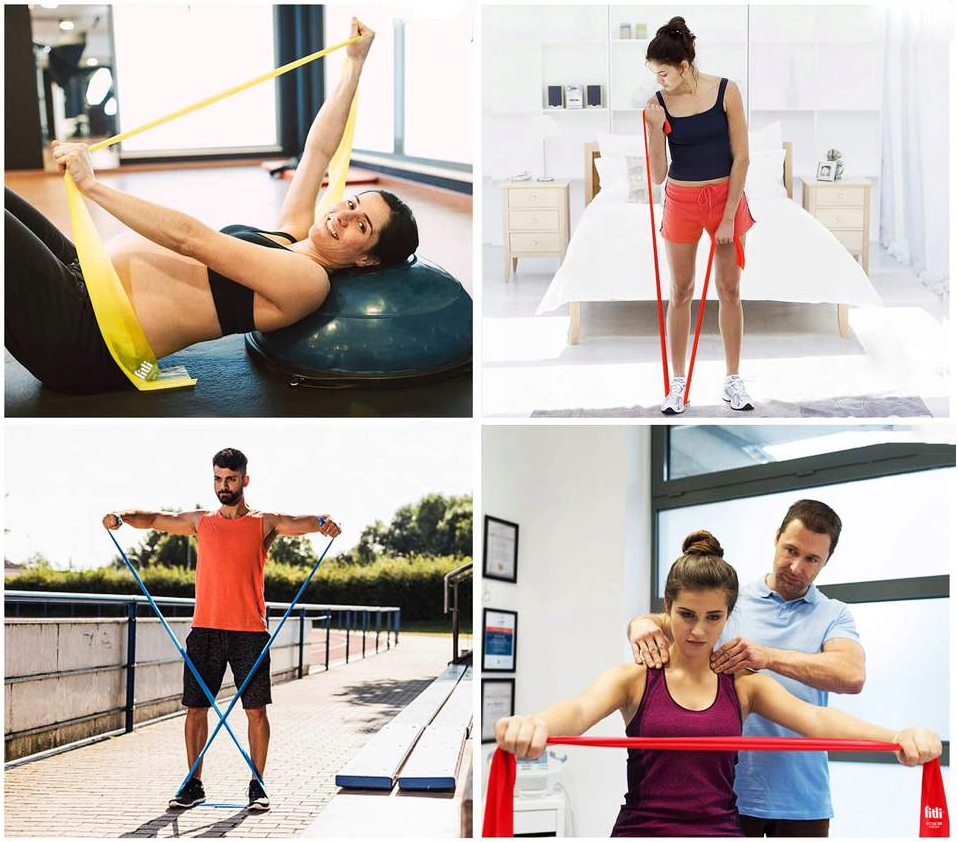 Гумові стрічки використовуються як у спорті, так і в реабілітації. Ідеальнодля жінок і чоловіків будь-якого рівня підготовки фізичної та будь-якого віку. Для початківців, середнього або професіоналів. Також корисний для виправлення дефектів постави у дітей.