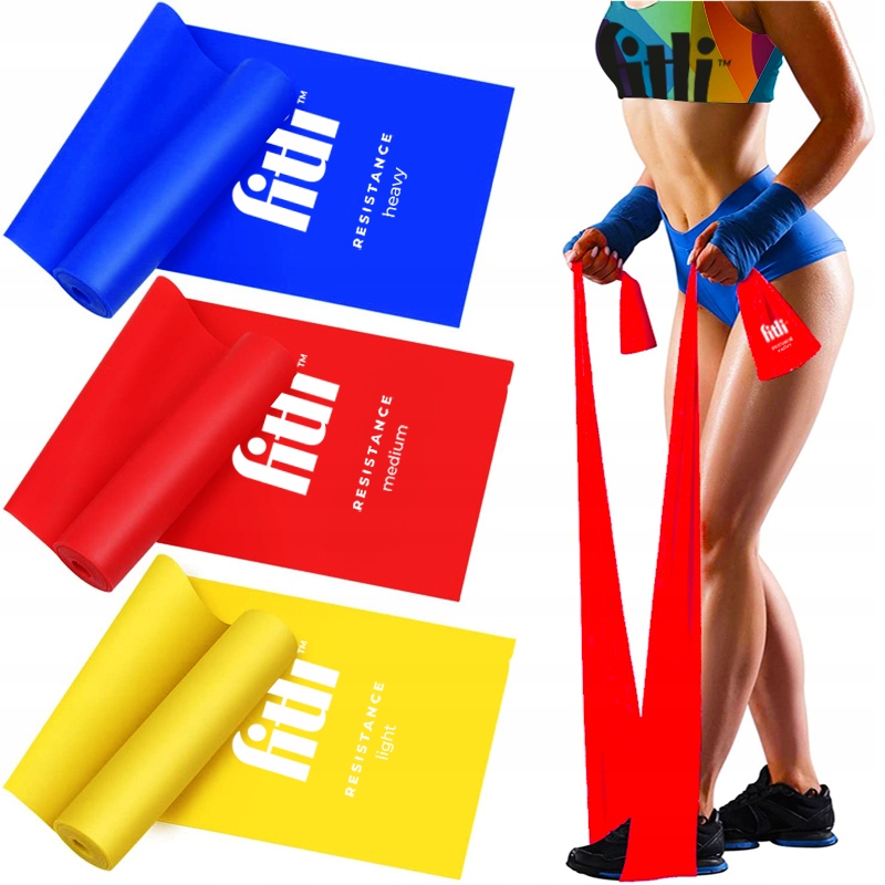 НАБІР З 3 реабілітаційних гумових стрічок для вправ Fitli FLAT BAND
