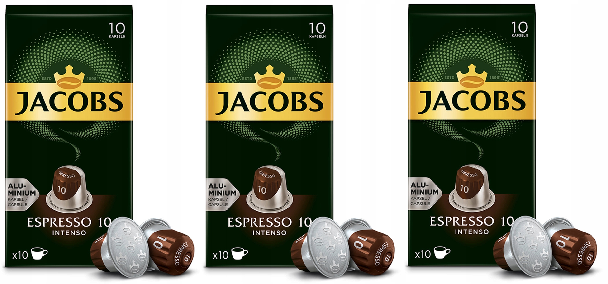 Набір із 3 алюмінієвих капсул Jacobs Espresso Intenso 10 штук, Intensity 10, сумісний із кавомашинами Nespresso®*
