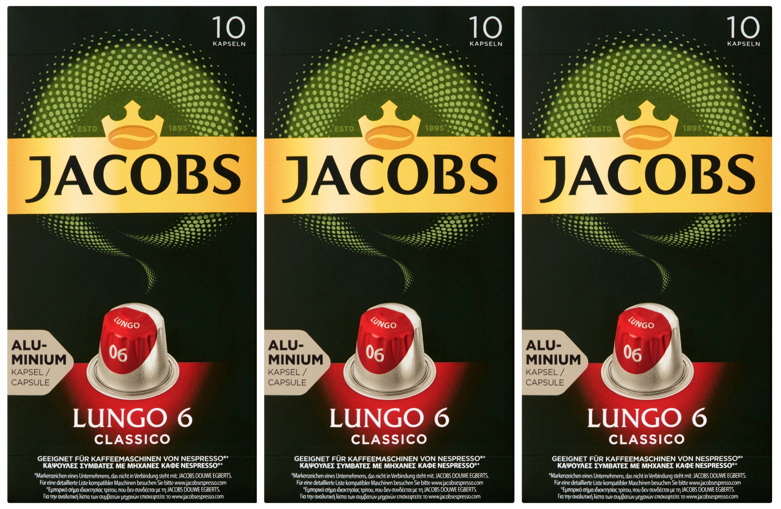 Просматривая «Набор из 3 капсул для Nespresso Jacobs Lungo 6 Classico 10 шт.», вы можете быть уверены, что данный товар из каталога «Капсулы для кофемашин» будет доставлен из Польши и проверен на целостность. В цене товара, указанной на сайте, учтена доставка из Польши. Внимание!!! Товары для Евросоюза, согласно законодательству стран Евросоюза, могут отличаться упаковкой или наполнением.