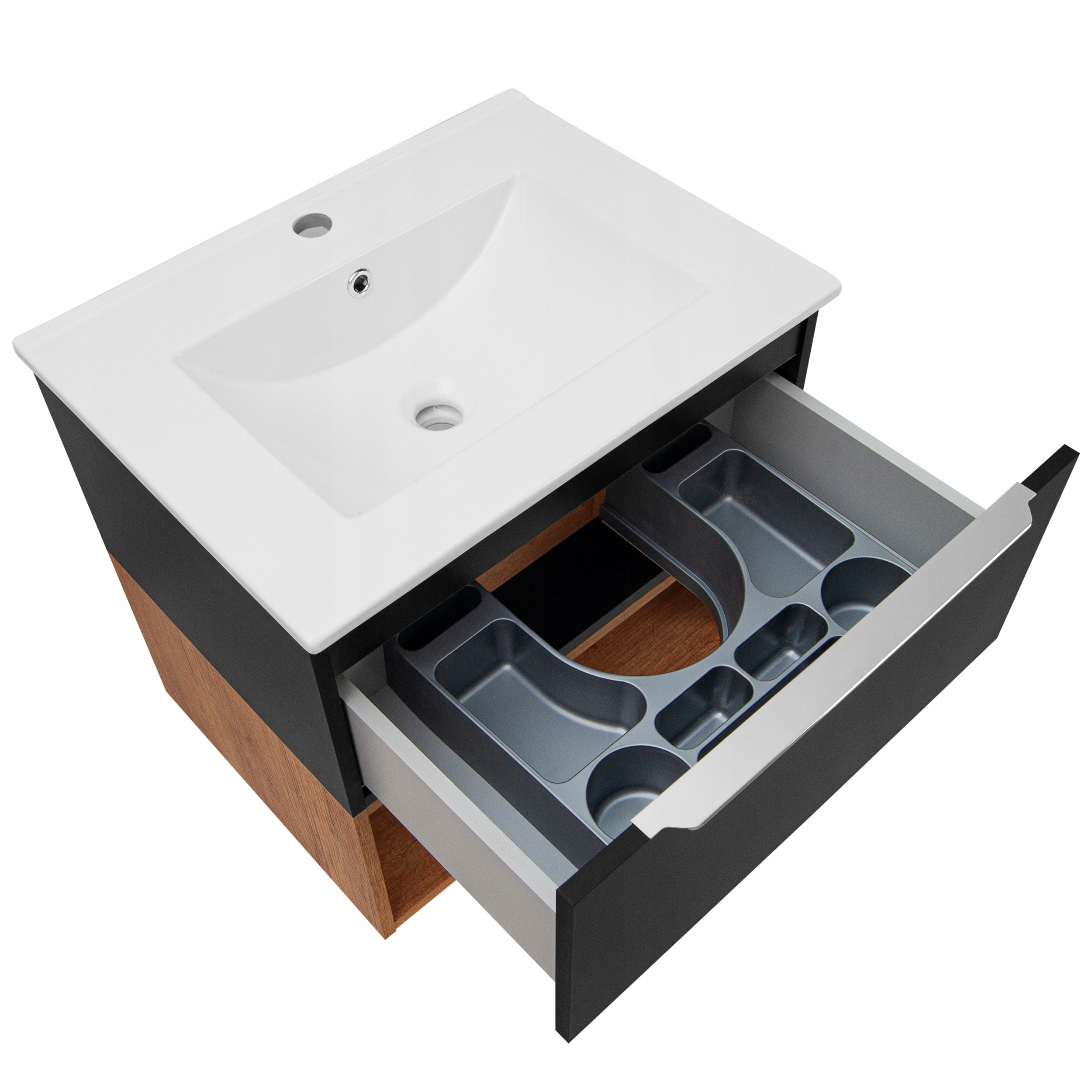 Набір 3 підвісних тумби Nelle, чорний матовий/дуб кантрі, з умивальником 60 см