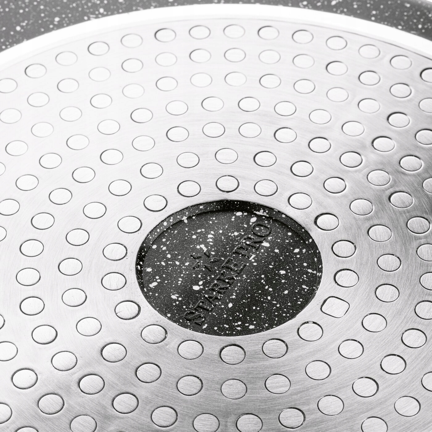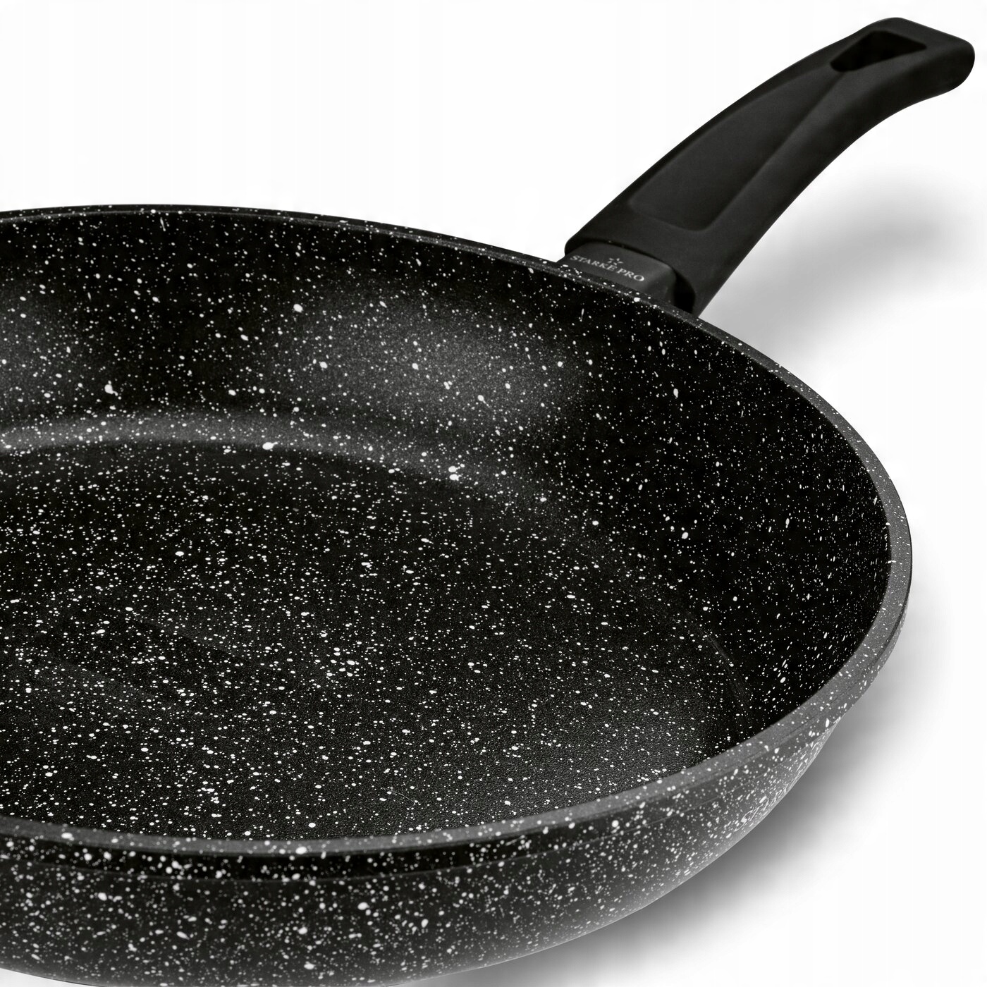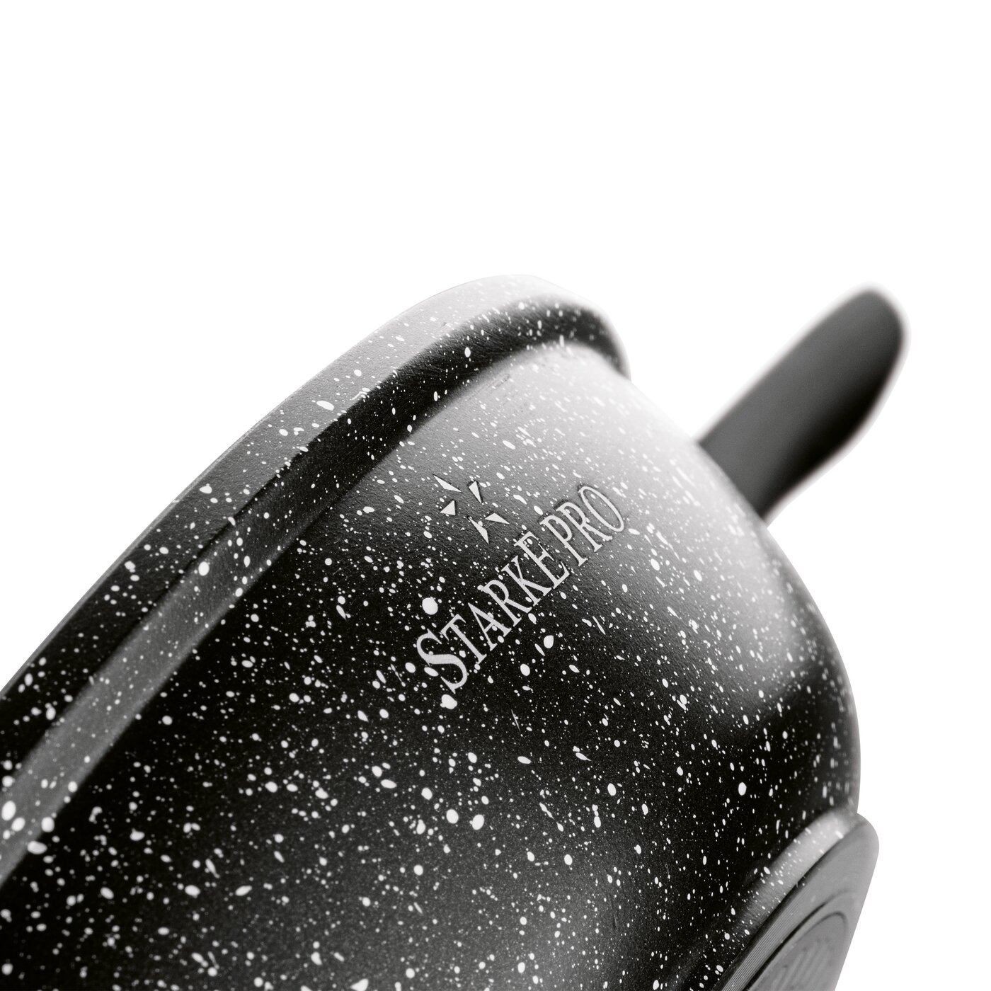 Набір з 3 мармурових сковород Starke Pro Chelsea 20 см 24 см 28 см можна використовувати на індукційних, газових, керамічних і електричних плитах. Корпус у них виготовлений з алюмінію. Завдяки цьому вони добре збалансовані. Вони також мають привабливу стійкість до високих температур і пошкоджень. Використане антипригарне покриття каменю було збагачене та зміцнене. Він також товщий за стандартні 3-шарові мармурові покриття, що запобігає прилипанню та підгорянню інгредієнтів. Його довговічність досягає 8000 циклів стирання - один з найкращих результатів у світі. На них можна смажити все, що завгодно, з невеликою кількістю вершкового або оливкового масла. Ви можете зручно змішувати інгредієнти і прати виріб. Сучасний дизайн мармурових каструль Chelsea зі смаком збагатить вашу кухню - це простий шлях до комфорту створення дієтичних і легкозасвоюваних страв. Посуд оснащений ручками soft touch, які не нагріваються і мають нековзку поверхню. У наборі 3 підставки для гарячого посуду. Вони захистять кухонну стільницю або стіл від високих температур. Ви також можете використовувати їх як роздільники для зберігання каструль одна на одній. Крім того, в набір входить 5 кухонних мірних чашок. Ви можете використовувати їх для вимірювання сипучих і рідких інгредієнтів у кількості 1,25-15 мл.
