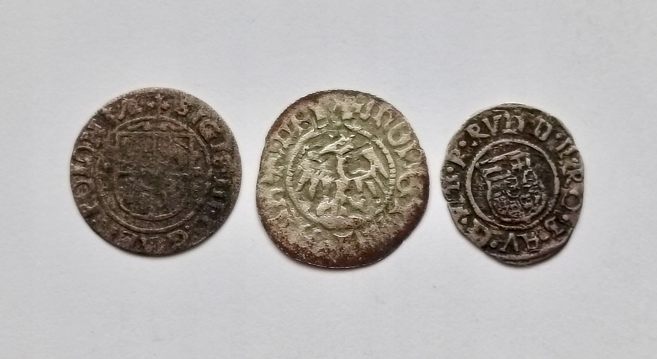 Півгроша Альбрахта, шилінг Сигізмунда III, угорський денар