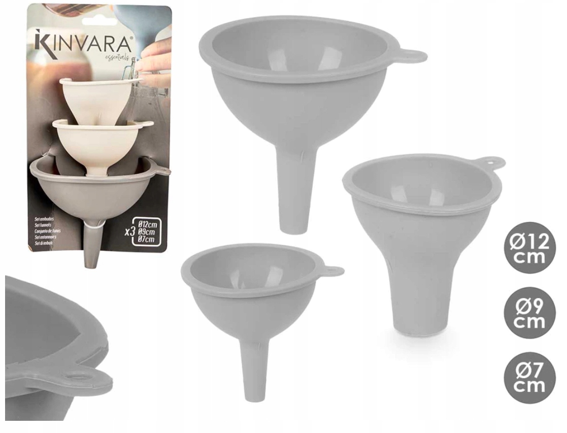 Практичний набір з трьох лійок різного розміру, ідеально підходить для наливання рідин, насипання спецій, борошна, цукру чи іншої їжі вироби.
