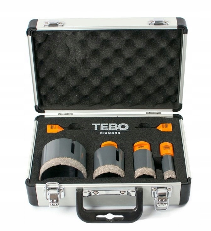 Набір діамантових отворів Tebo з діаметром: 20 мм, 35 мм, 50 мм. 70 мм і діамантові свердла з діаметром: 6 мм і 8 мм. валізи параметри: