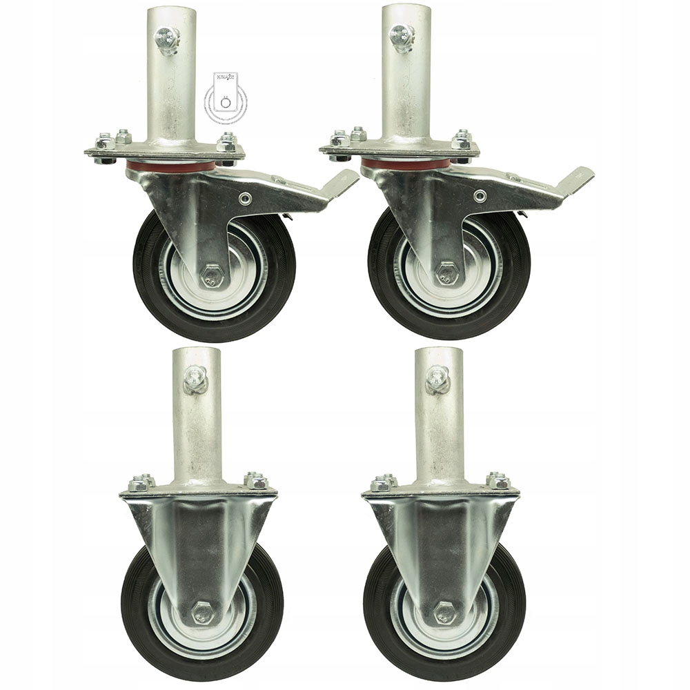 Набір містить чотири колеса, закріплені на шпильці. Два колеса з гальмом, код 7STGU160/37, в таблиці під пунктом 2, і два фіксованих колеса з кодом 8STGU160/37, в таблиці під пунктом 3.