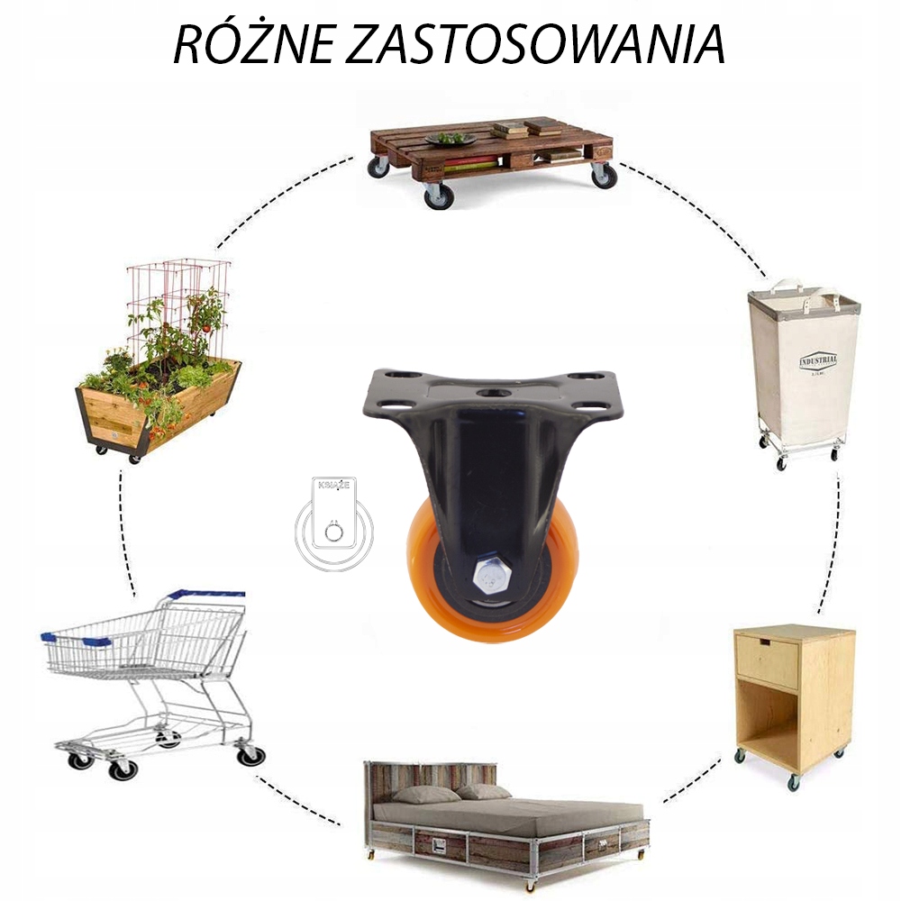 - КОЛЕСО складається з поліпропіленової втулки та поліуретанової шини без слідів, має подвійну кулькову опору. Колеса мають міцність 70 кг на колесо. Вони повільно зношуються, стійкі до пошкоджень, поглинають удари та вібрацію. Вони плавно обертаються на твердих і гладких поверхнях, як-от бетон, з дуже невеликим тертям.
