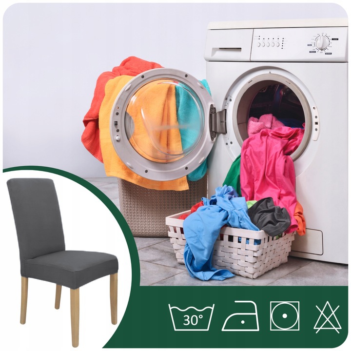 Чохол не потрібно прасувати. Поклавши його на стілець, просто проведіть по ньому рукою, щоб він добре встав. Якщо хтось вважає, що йому потрібно прасувати, рекомендуємо низьку температуру.