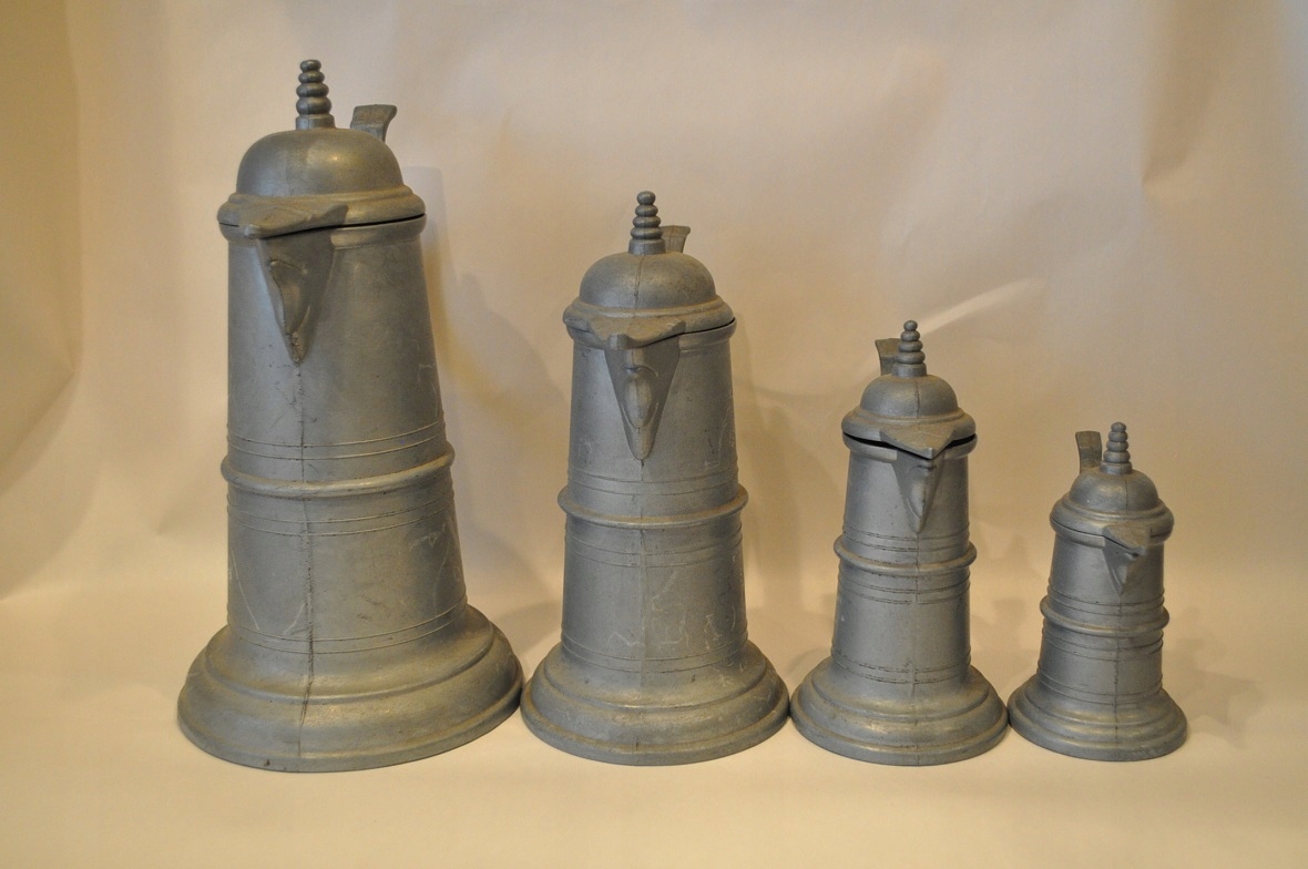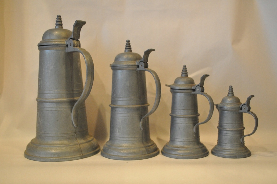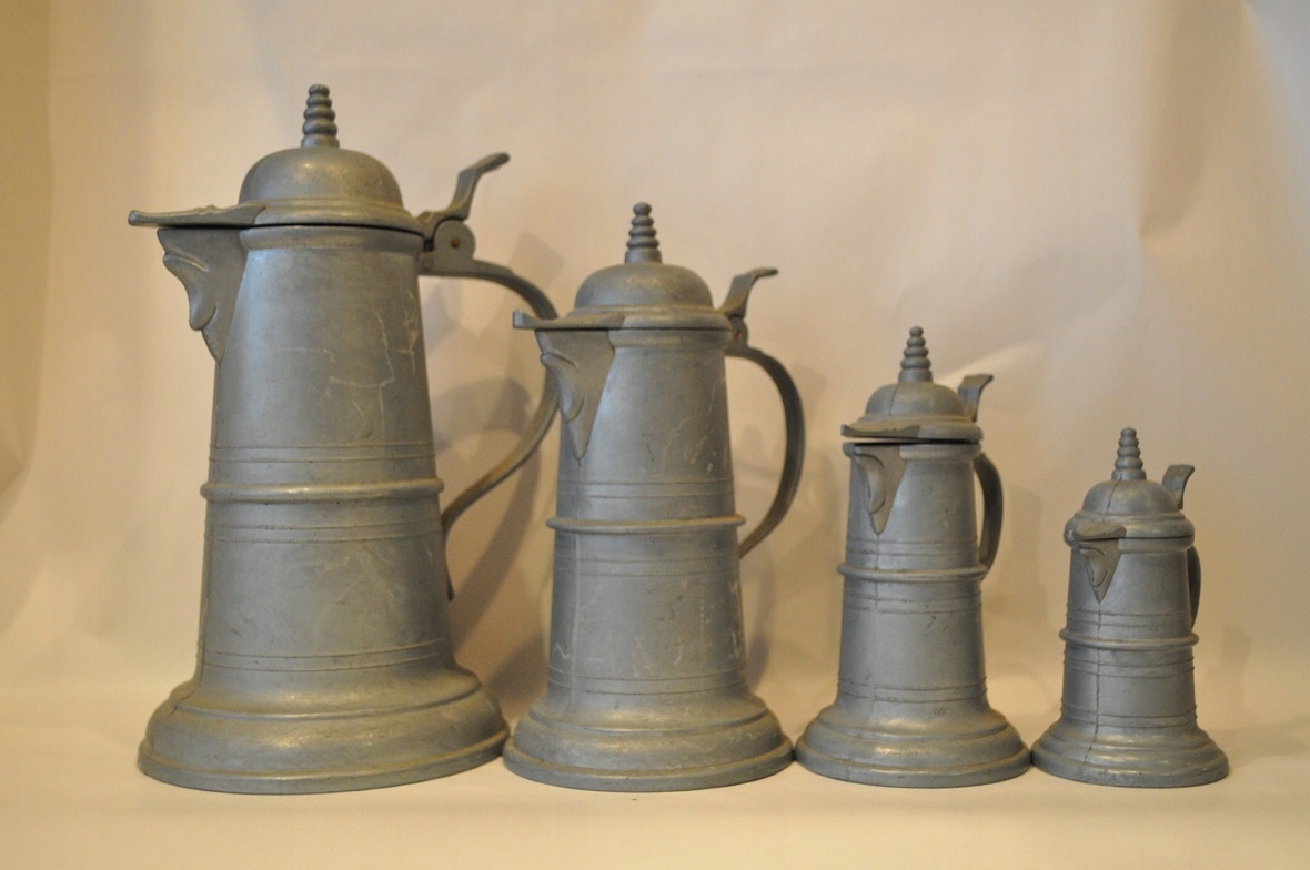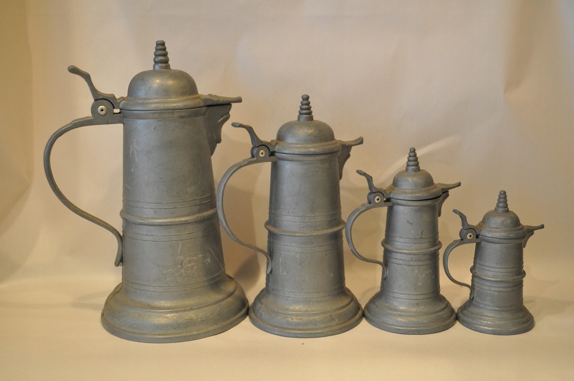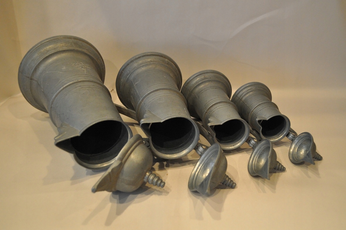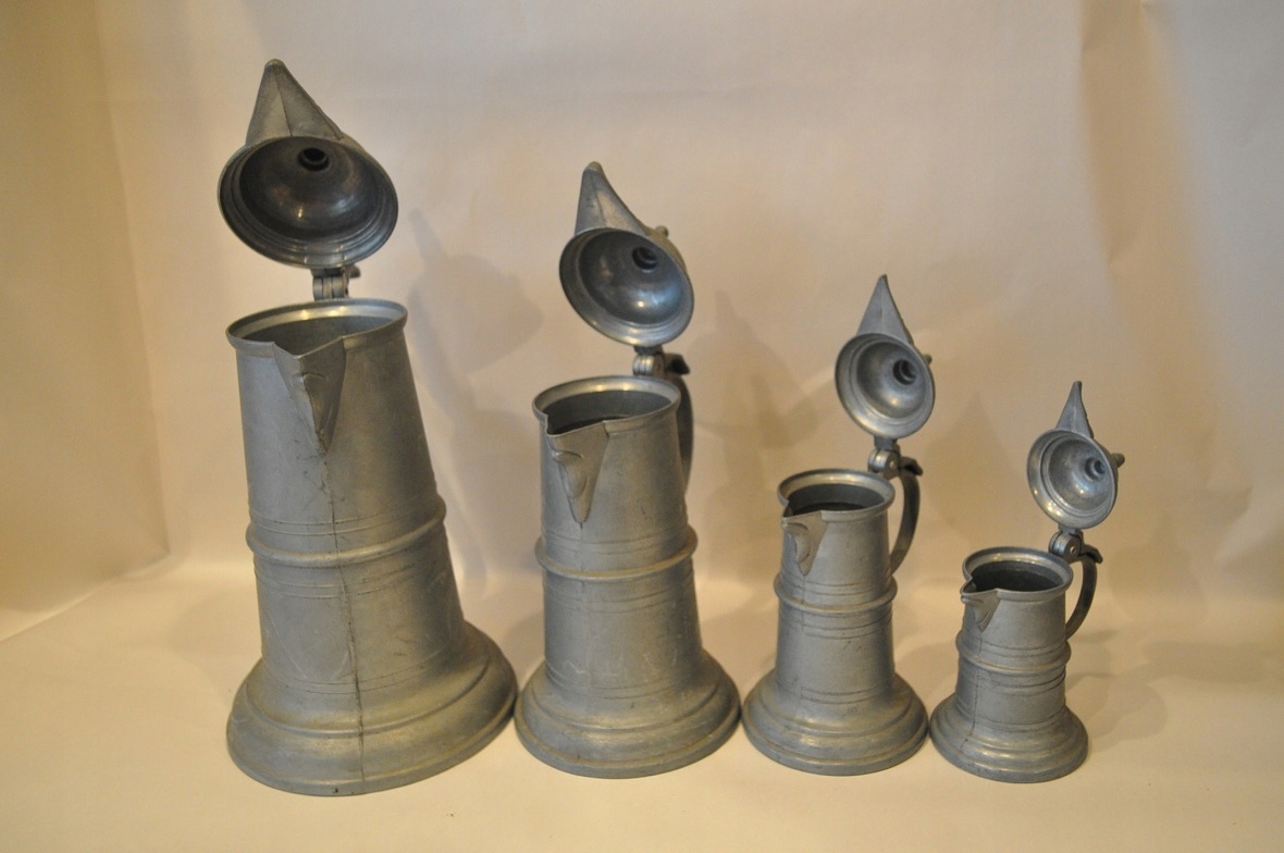 НАБІР 4 шт. СТАРІ ПІДПИСАНІ ГЛЕЧКИ ЦИНКОВІ /6028