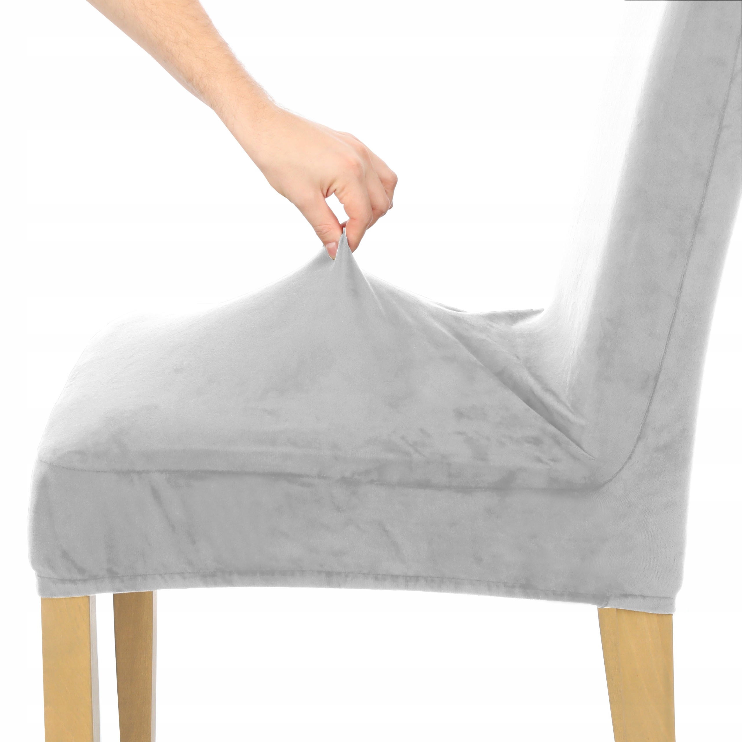 НАБІР 4 ШТ. СВІТЛО-СІРИЙ ЕЛАСТИЧНИЙ ВЕЛЮРОВИЙ ЧОХОЛ НА КРІСЛО