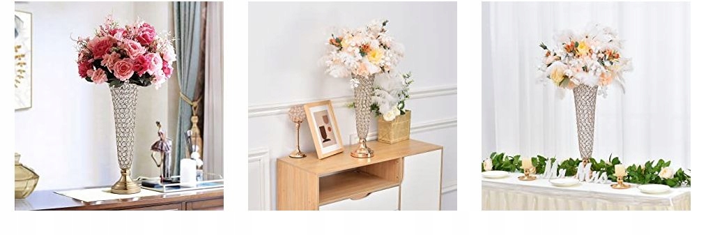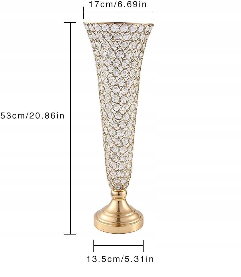 - Ваза для квітів з кришталевою трубою, 4 шт. Висота: 53,3 см, отвір зверху: 17 см, глибина: 43,2 см, діаметр дна: 13,5 см. Матеріал: метал з кристалами. Добре поєднується з квітами або штучними квітами, щоб додати блиск будь-якій події (штучні квіти не входять)