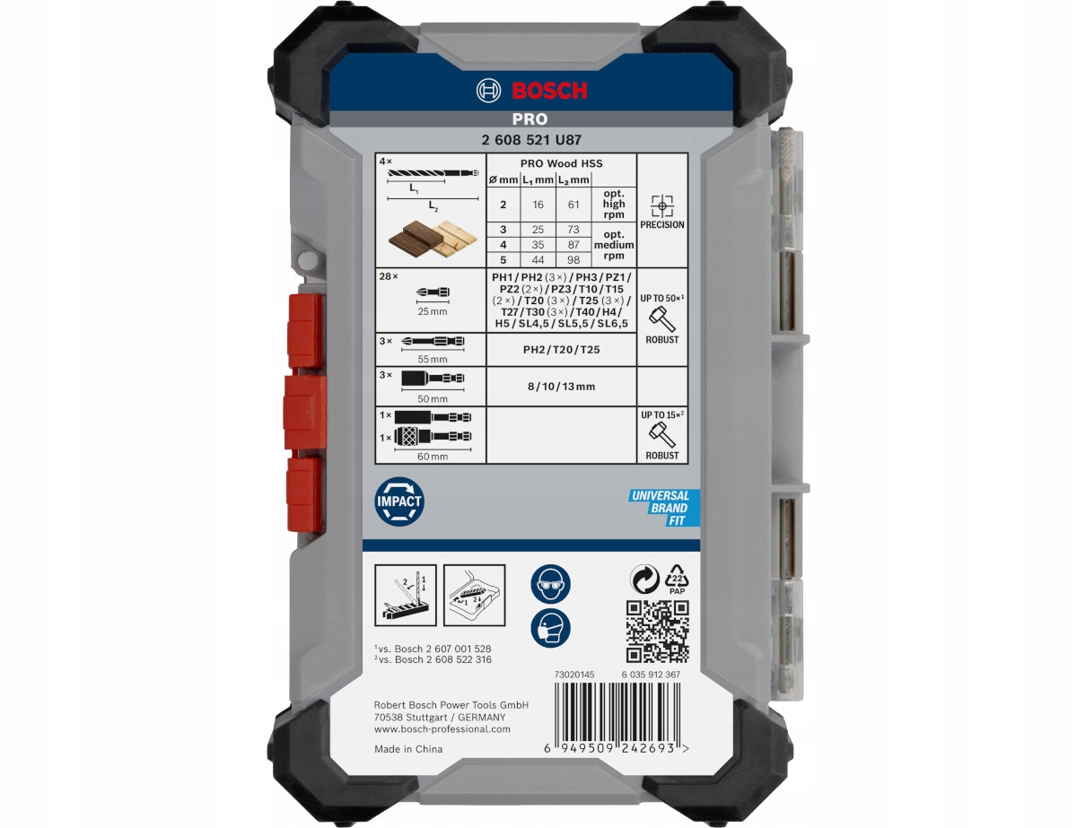НАБІР 40 СВЕРДЛ ТА ГОЛОВОК IMPACT WOOD BOSCH PRO У КАСЕТІ