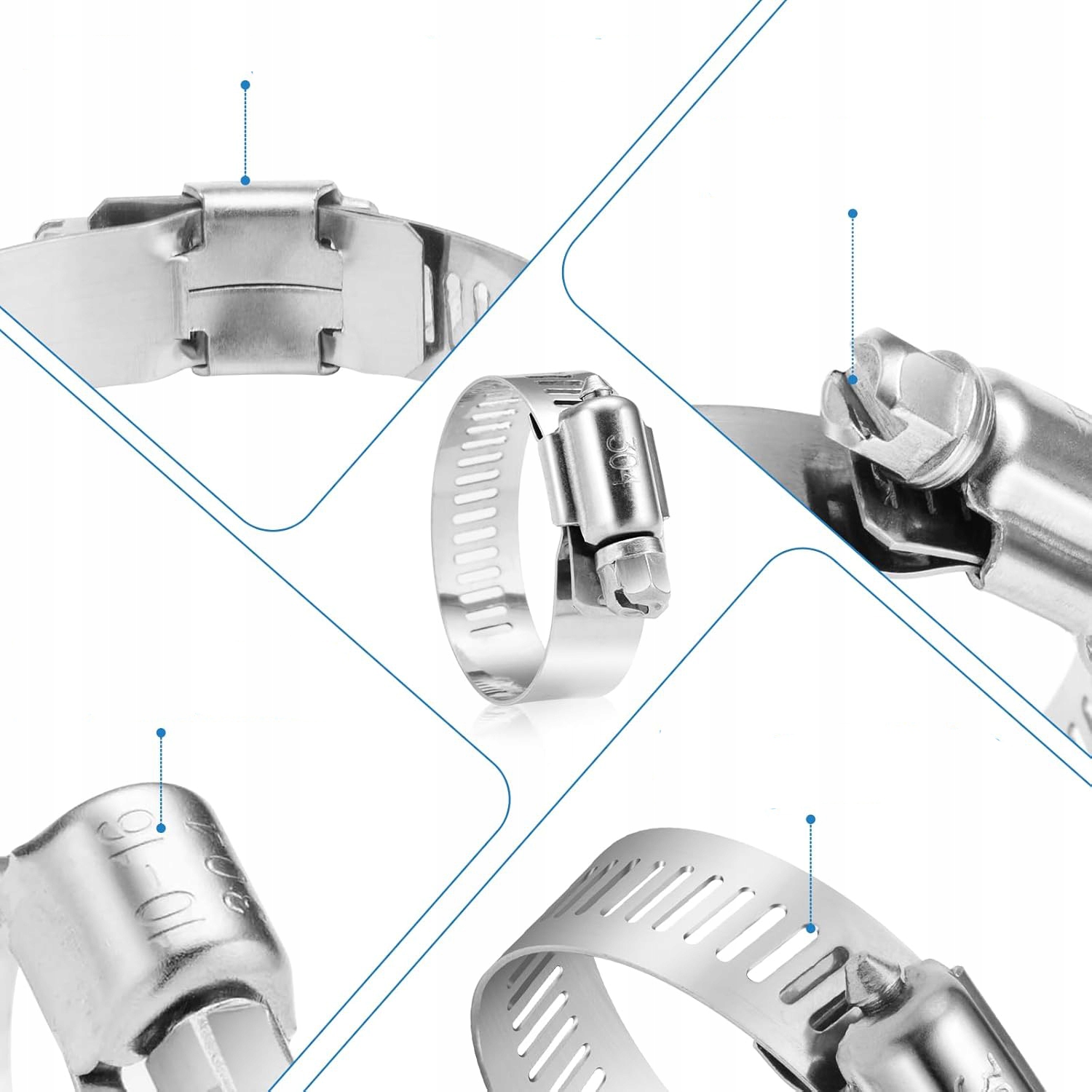 Високоякісний набір черв’ячних затискачів із міцної нержавіючої сталі 304. Ці затискачі характеризуються чудовою стійкістю до корозії та високою механічною міцністю, що робить їх ідеальним рішенням для різноманітних застосувань як у домашньому, так і в промисловому середовищі.