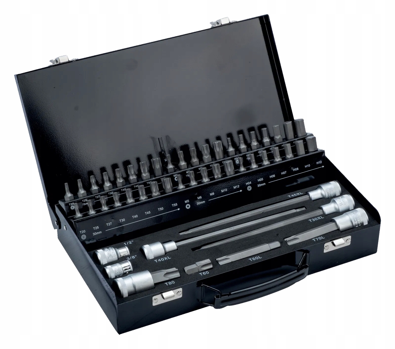- Повний набір головок і різних насадок, призначених для автомобільної промисловості та інших професійних галузей