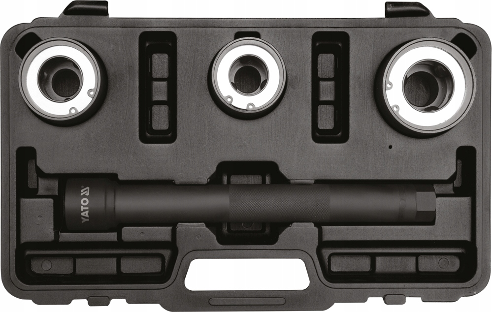 Професійний комплект сервісного сервісу рульового стрижня. Ручка та три замінні голови включені. Діапазони роботи: 30 мм - 35 мм, 35 мм - 40 мм, 40 мм - 45 мм. Номер індексу yt -06155 yt -06155