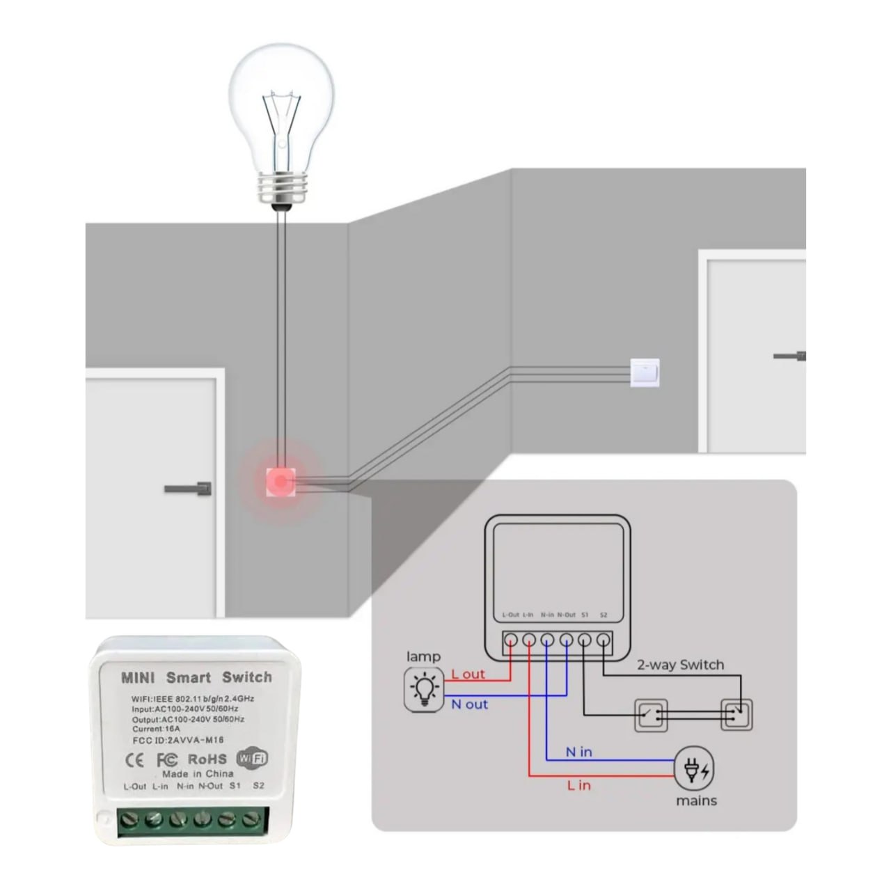 Компактний розумний WiFi комутатор потужністю до 16А / 3500Вт, сумісний з додатками Tuya Smart і Smart Life. Дозволяє дистанційно керувати освітленням або іншими електричними пристроями за допомогою смартфона, голосу (Google Home, Alexa) і за допомогою розкладів і сценаріїв автоматизації.