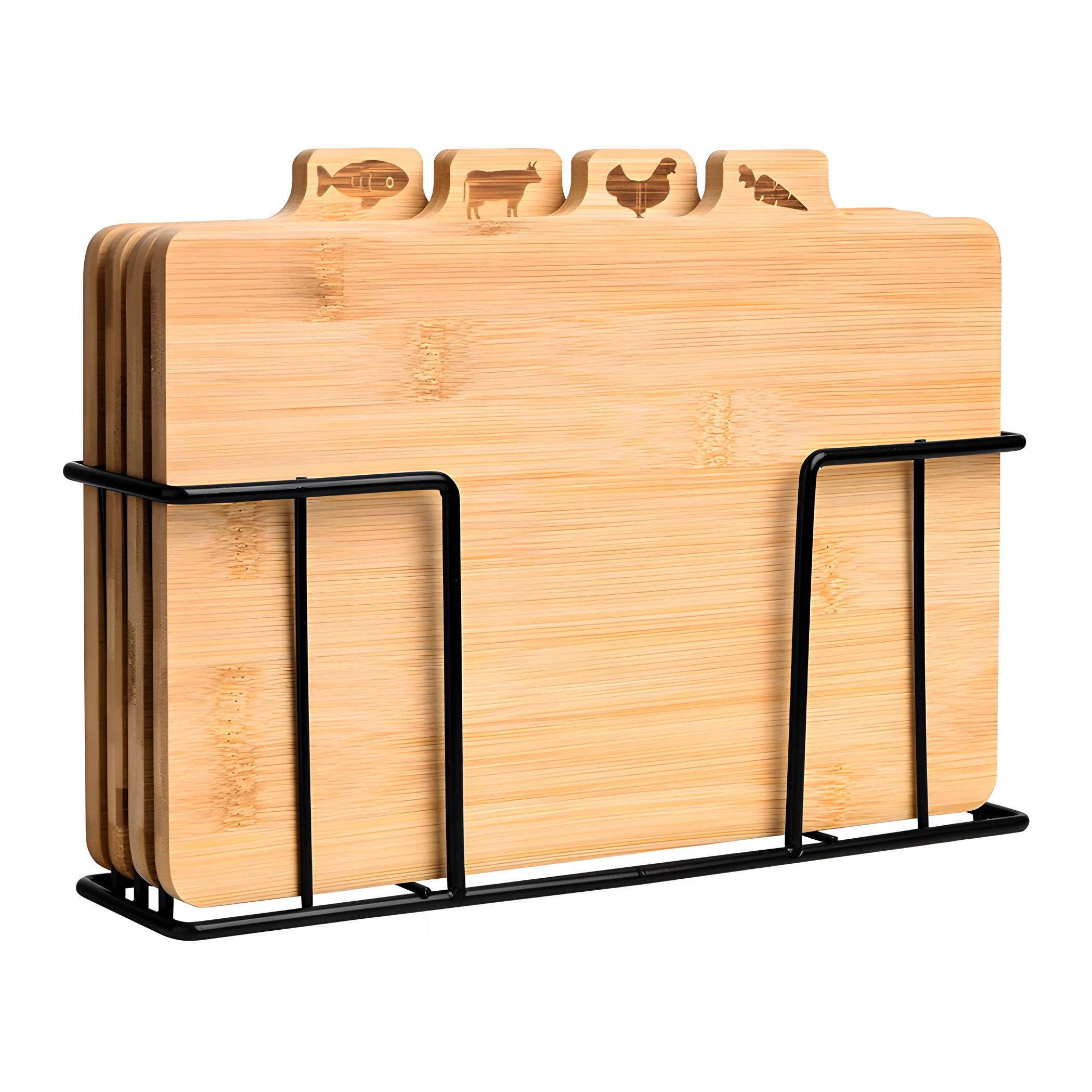 НАБІР 4 БАМБУКОВІ КУХОННІ ДОШКИ, ДЕРЕВ'ЯНА ОБРІБНА ДОШКА + МЕТАЛЕВА ПІДСТАВКА