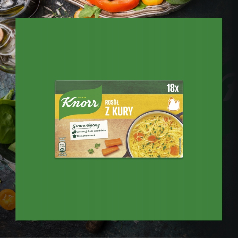 - Універсальне використання:Ідеальна добавка до супів, соусів, тушкованих овочів або печені. Завдяки цьому ваші страви набудуть інтенсивності та глибини смаку, які ви шукаєте під час повсякденного приготування. Курячий суп Knorr ідеально підходить як основа для таких супів, як томатний або овочевий суп, а також як секретний інгредієнт, який збагатить смак смаженого м’яса чи соусу.