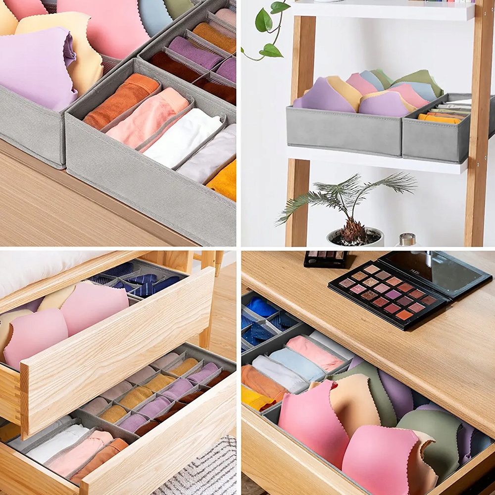 Органайзери дозволяють легко тримати вашу нижню білизну в порядку, що дозволяє швидко вирішити, що одягнути. Насолоджуйтесь організованим простором у своїй шафі. Крім того, завдяки легкій конструкції його можна легко переміщати в інші місця. Органайзери мають квадратні та поздовжні відділення, які ідеально підходять для зберігання шкарпеток, колготок, бюстгальтерів, білизни та краваток.