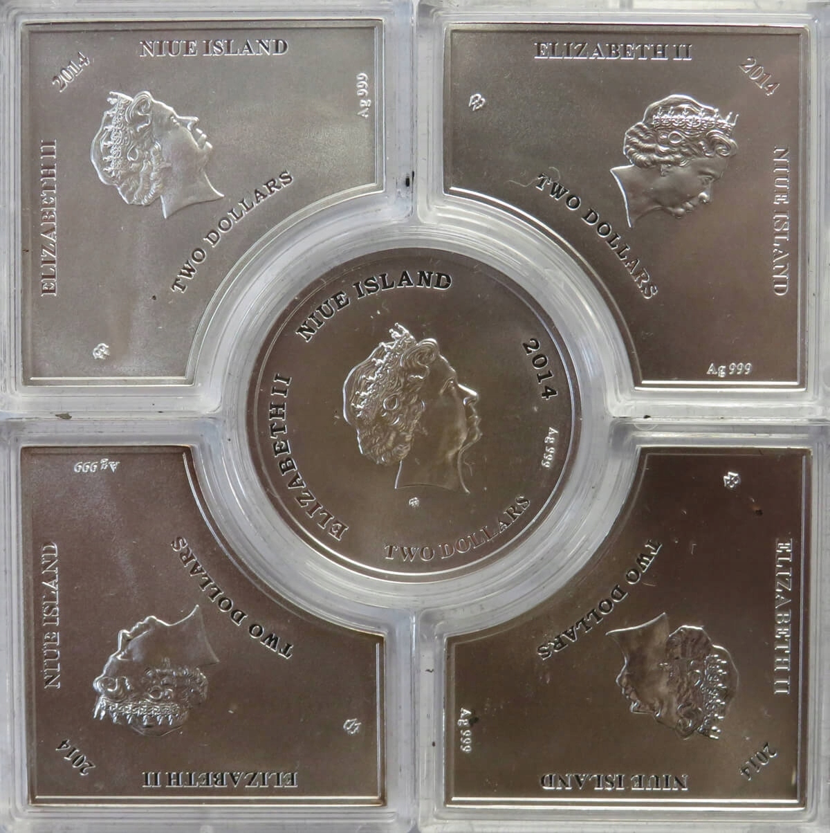 Набір 5 x 2 $ 2014 Острів Ніуе - Воронцовський палац Крим, срібло Ag999