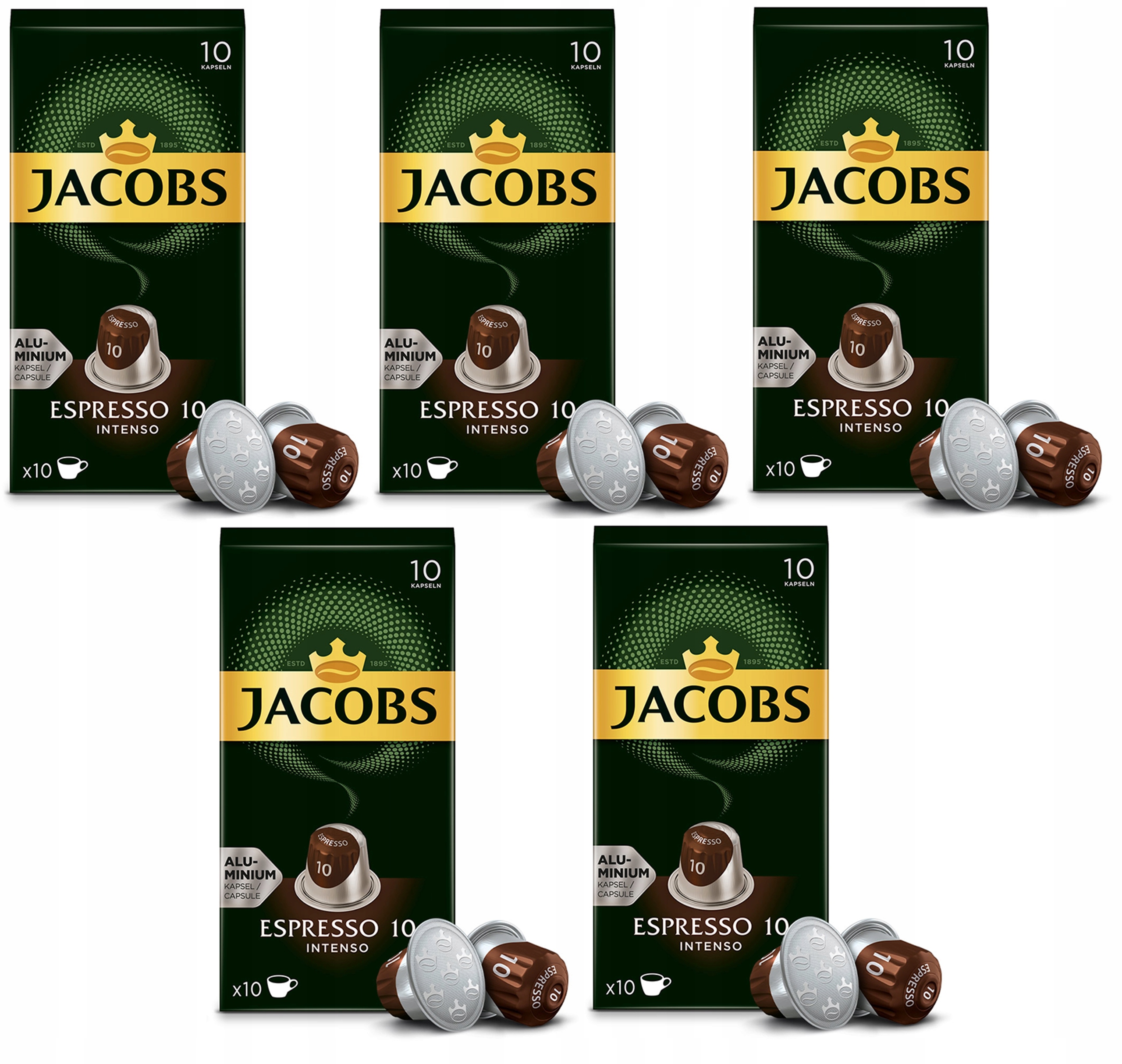 Набір із 5 алюмінієвих капсул Jacobs Espresso Intenso, 10 штук, Intensity 10, сумісний із кавомашинами Nespresso®*
