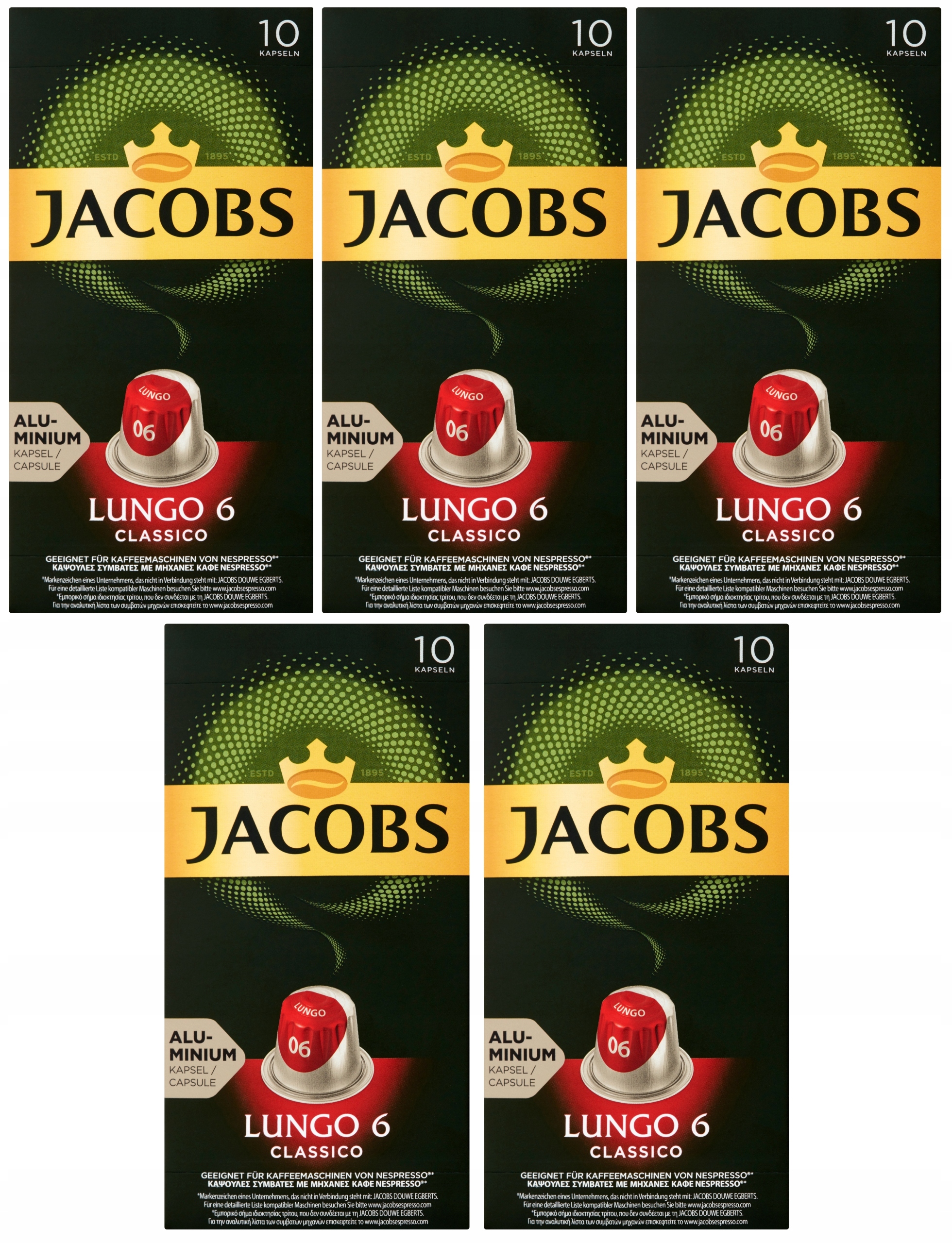 Набір 5 капсул для Nespresso Jacobs Lungo 6 Classico 10 шт.