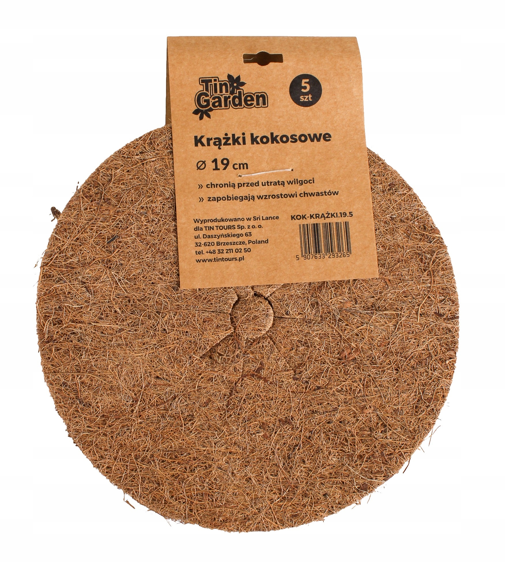 НАБІР 5 КОКОСОВИХ ДИСКІВ ДЛЯ КВІТКОВОГО ГОРЩИКА диам. 19 см