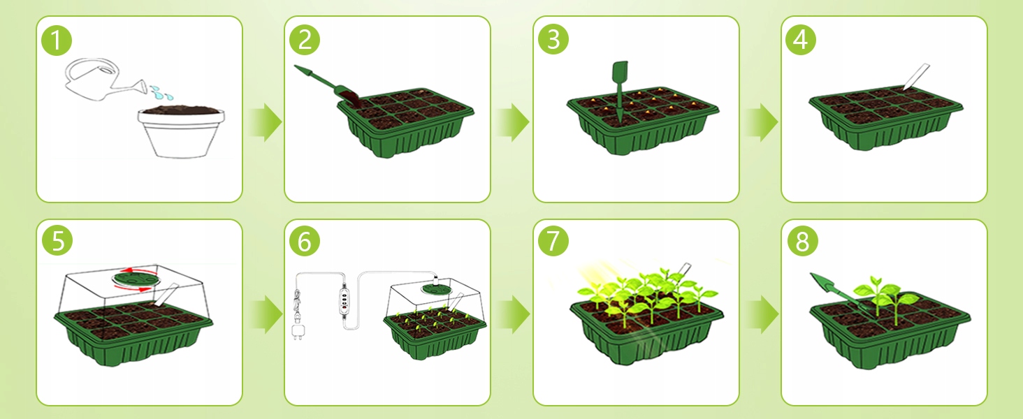 НАБІР 5 МІНІ ТЕПЛИЦЬ ДЛЯ ПРОРОЩУВАННЯ 12 КОМІРНИКІВ ПРОРОЩУВАННЯ З РОСЛИННОЮ ЛАМПОЮ
