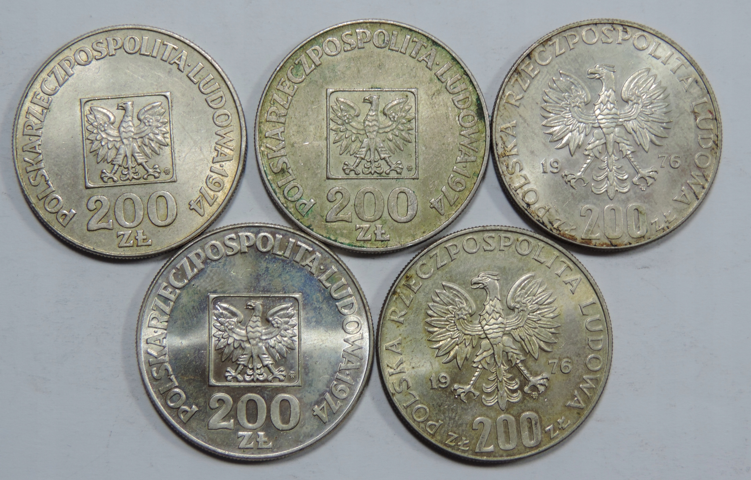 НАБІР 5 СРІБНИХ МОНЕТ - Ag COIN - 200 ZLOTY PRL - POLAND -OY8423