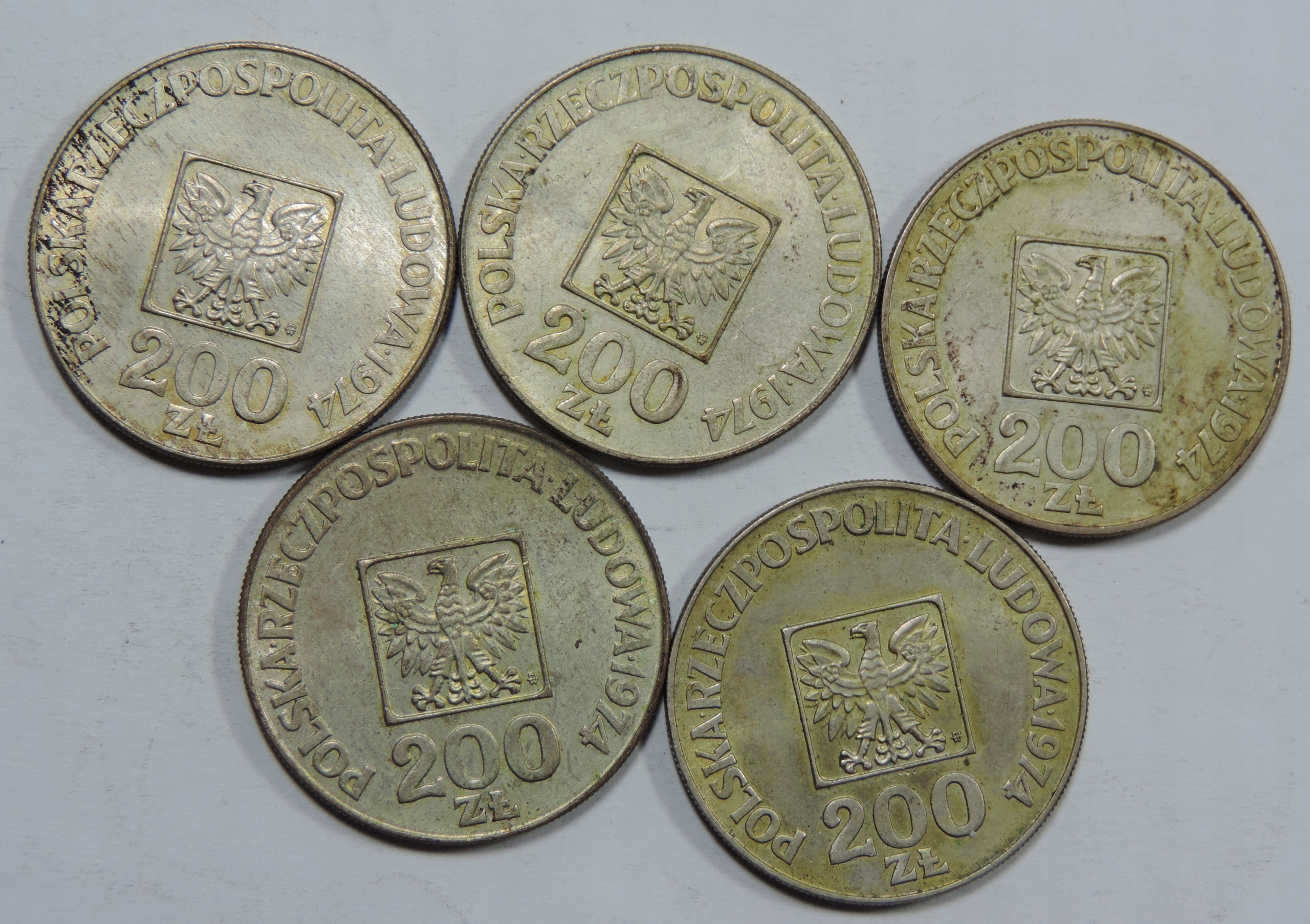 НАБІР 5 СРІБНИХ МОНЕТ - Ag COIN - 200 ZLOTY PRL - POLAND -OY8424