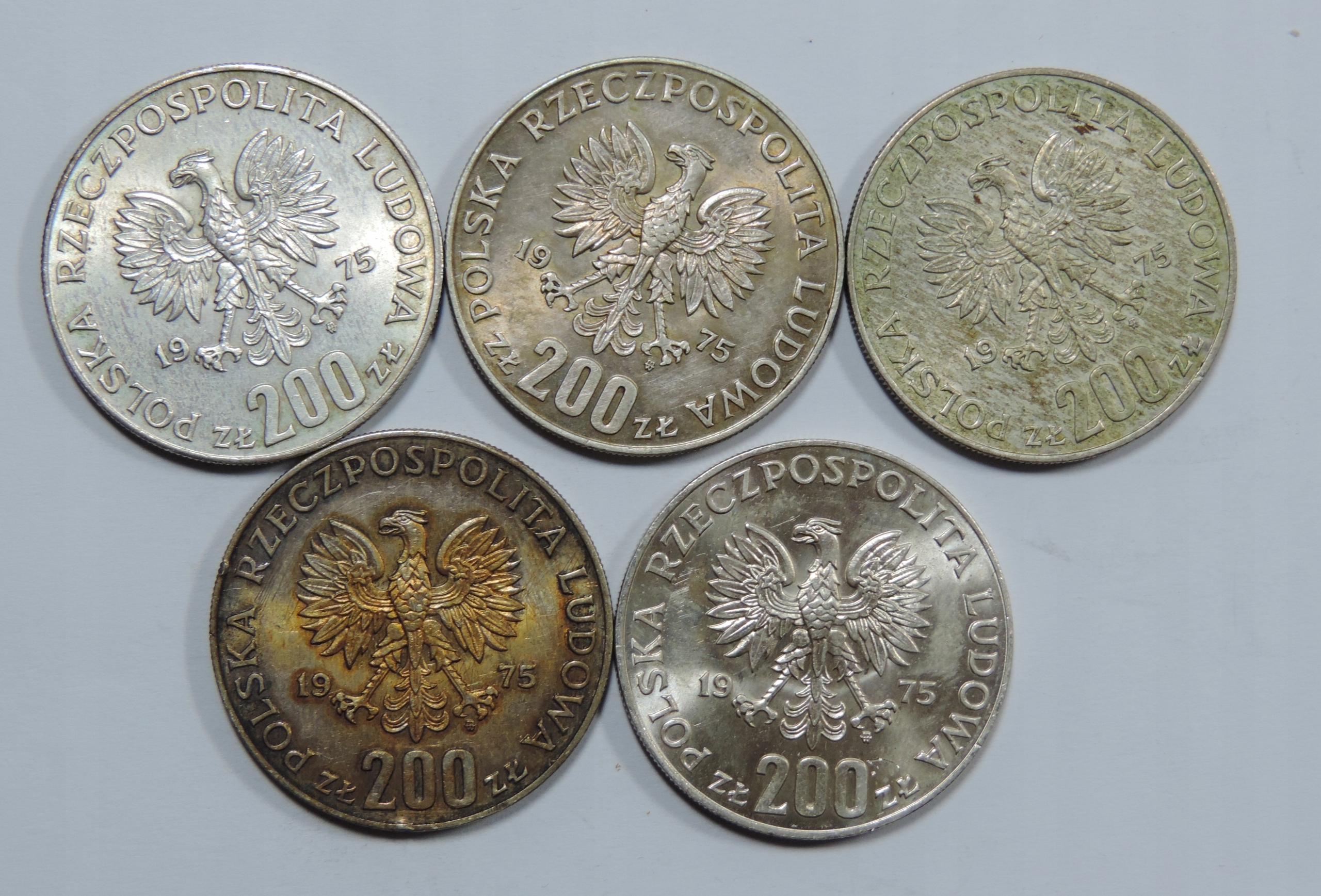 НАБІР 5 СРІБНИХ МОНЕТ - Ag COIN - 200 ZLOTY PRL - ПОЛЬЩА -OY8418
