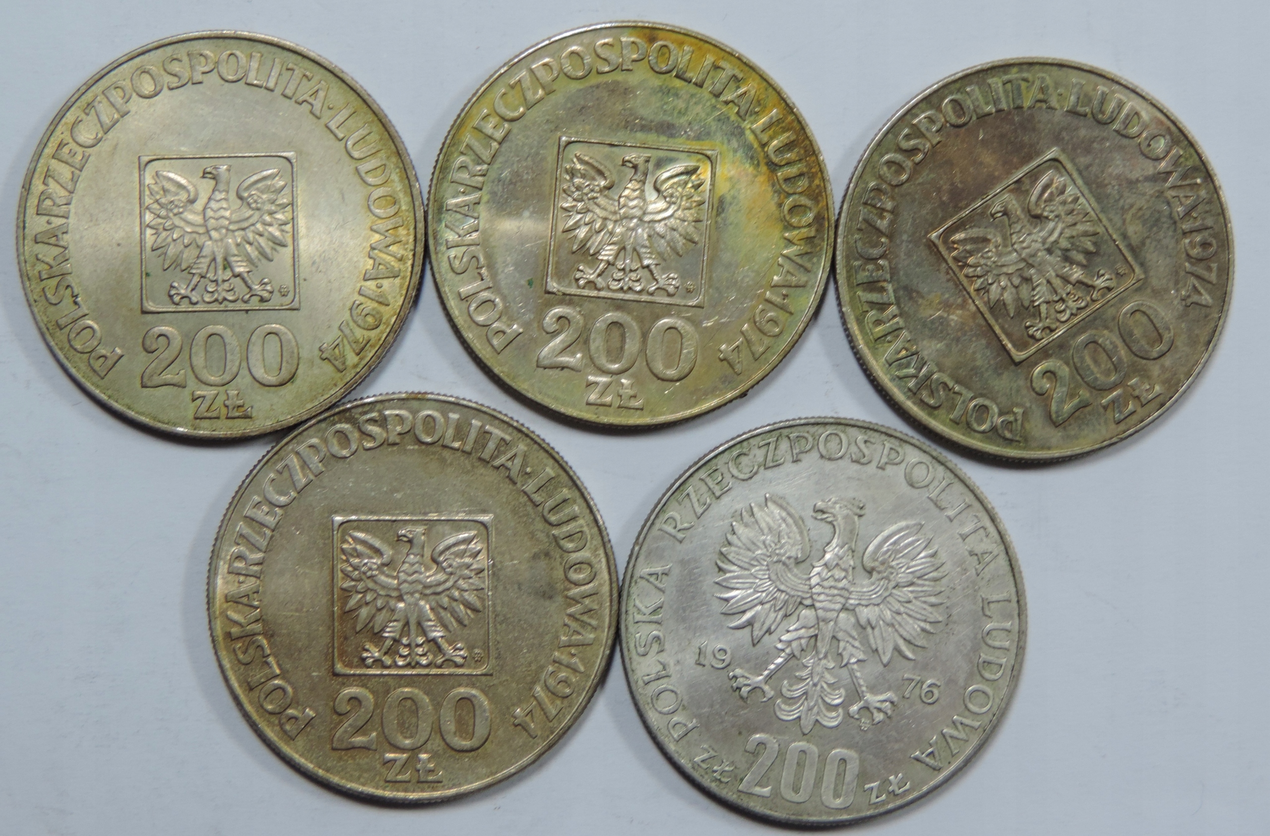 НАБІР 5 СРІБНИХ МОНЕТ - Ag COIN - 200 ZLOTY PRL - ПОЛЬЩА -OY8420
