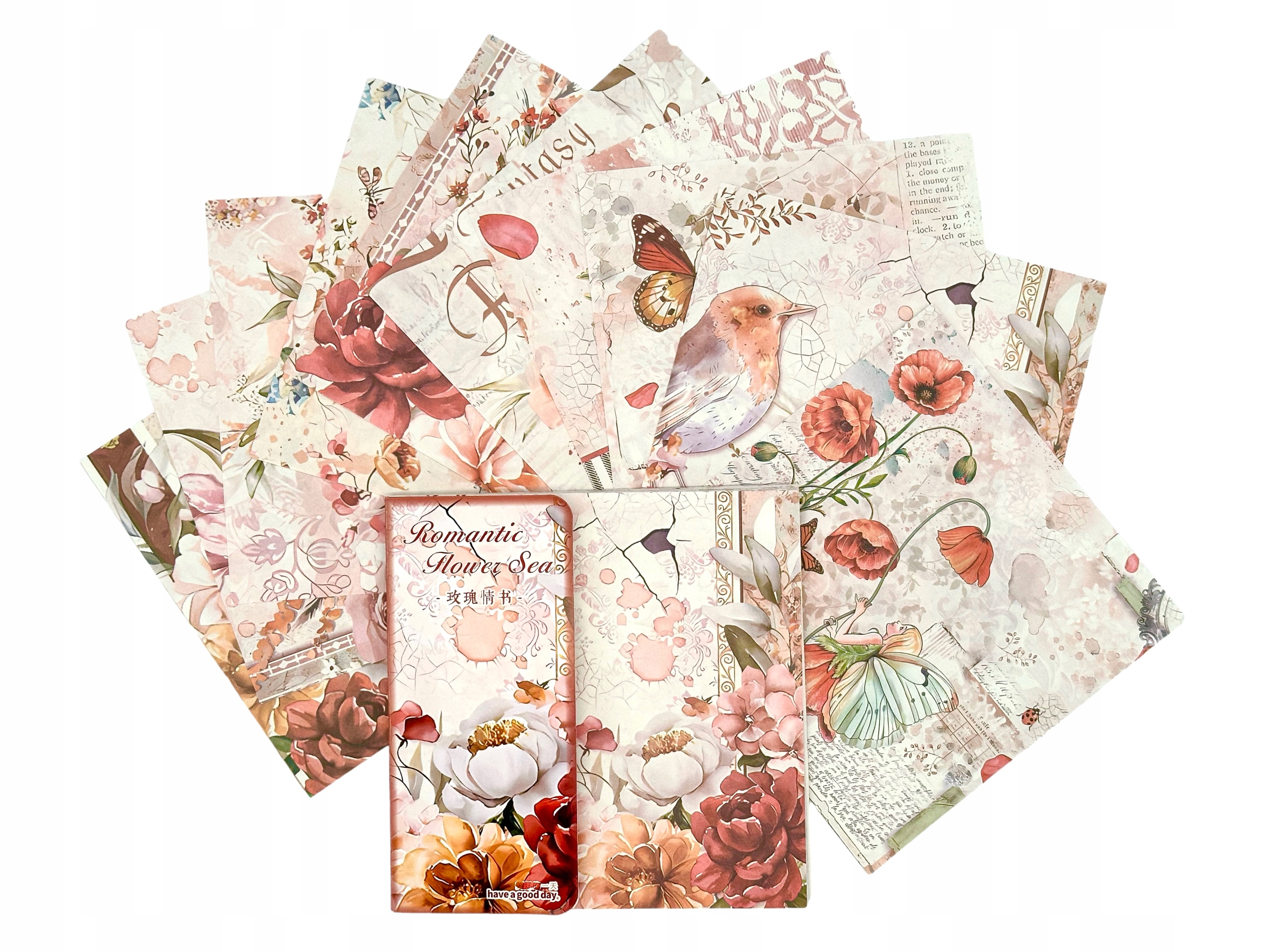 НАБІР 50 АРКУШІВ ПАПЕРУ 14 х 14 СМ СКРАПБУКІНГ РОСЛИНИ КВІТИ