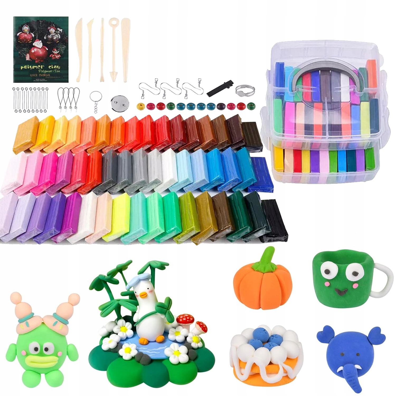🎁Стартовий набір полімерної глини - 50 кольорів полімерної глини, 5 інструментів для ліплення та набір ювелірних аксесуарів, полімерна глина для запікання в духовці, для творчої та творчої гри дітей🎁