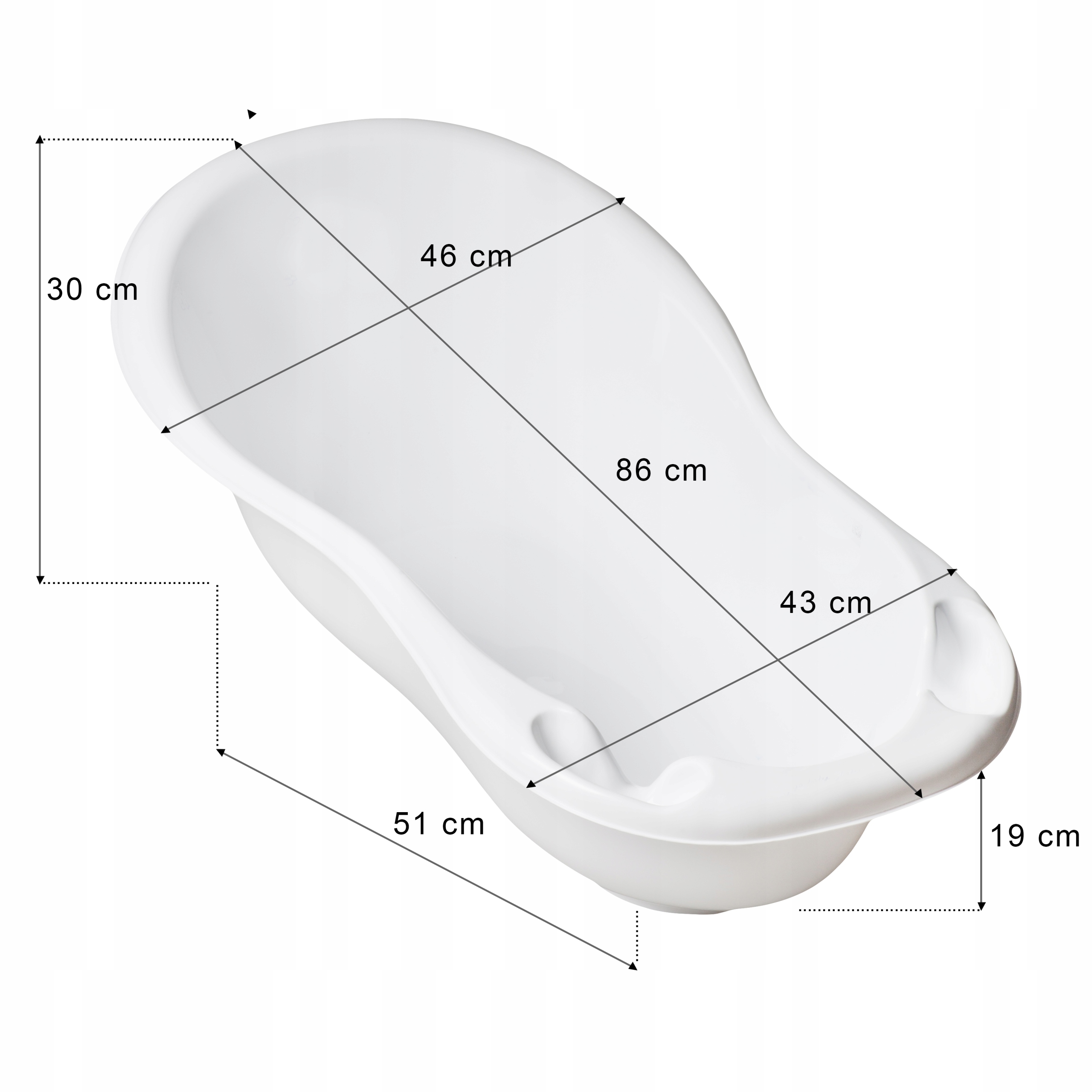 - Довжина ванночки 86 см