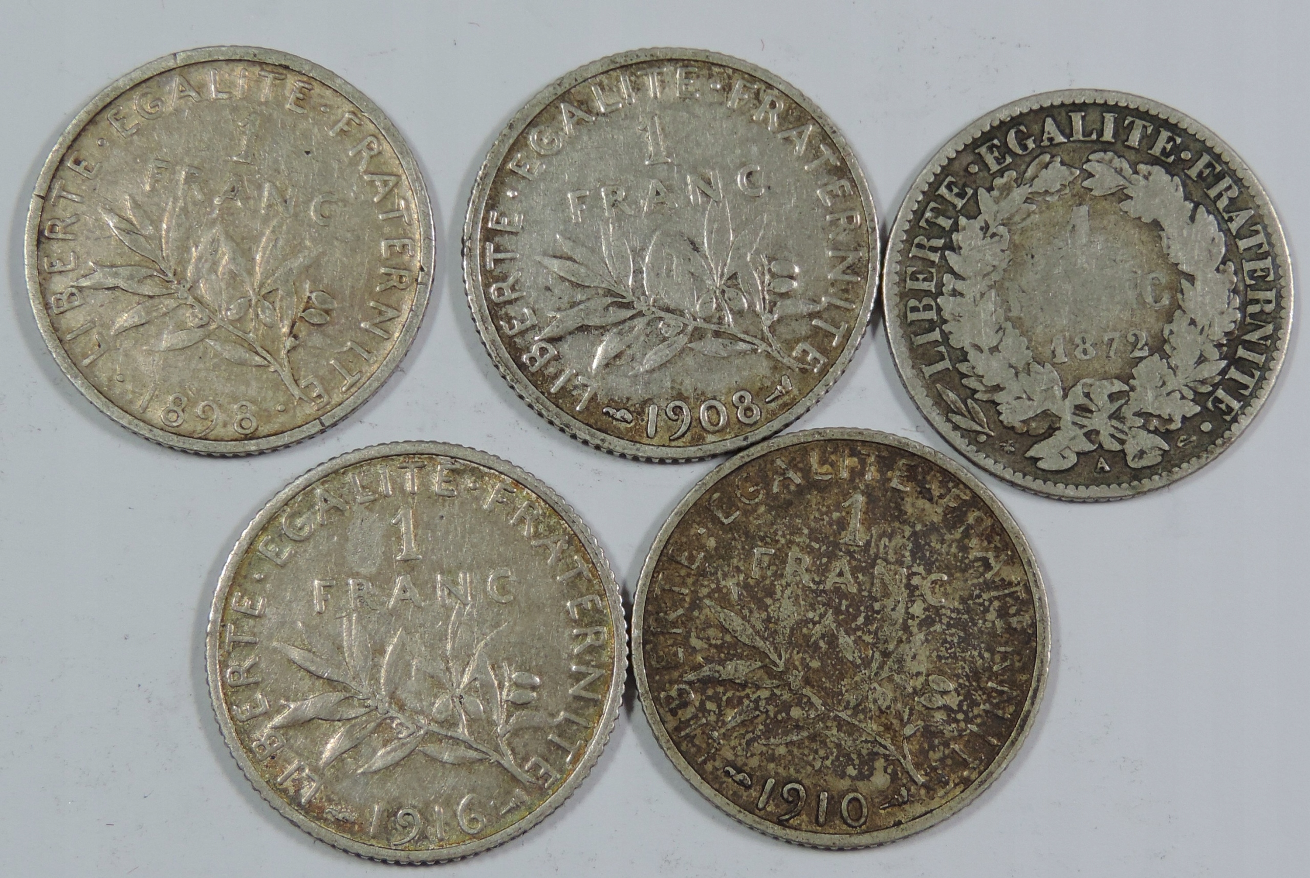 НАБІР 5x 1 ФРАНК - ФРАНЦІЯ - СРІБНІ МОНЕТИ - Ag COINS -OE9802