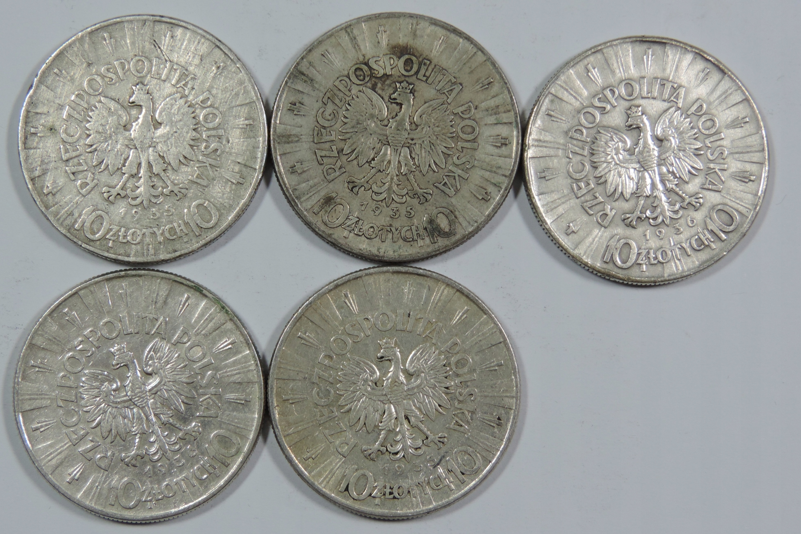 НАБІР 5x 10 PLN PIŁSUDSKI - ПОЛЬЩА - СРІБНІ МОНЕТИ - Ag COINS -OE8465