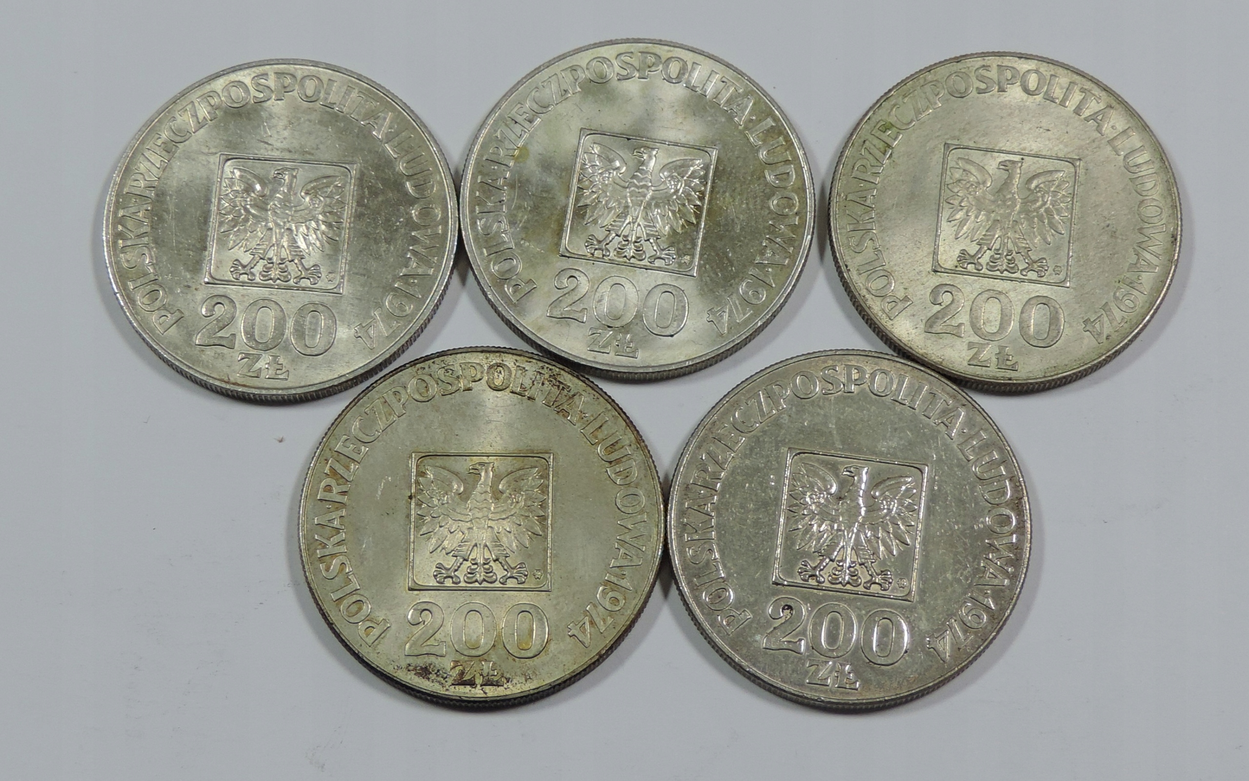 НАБІР 5x 200 ЗЛОТИЙ - XXX РОКІВ PRL - СРІБНІ МОНЕТИ - Ag COINS -OE4001