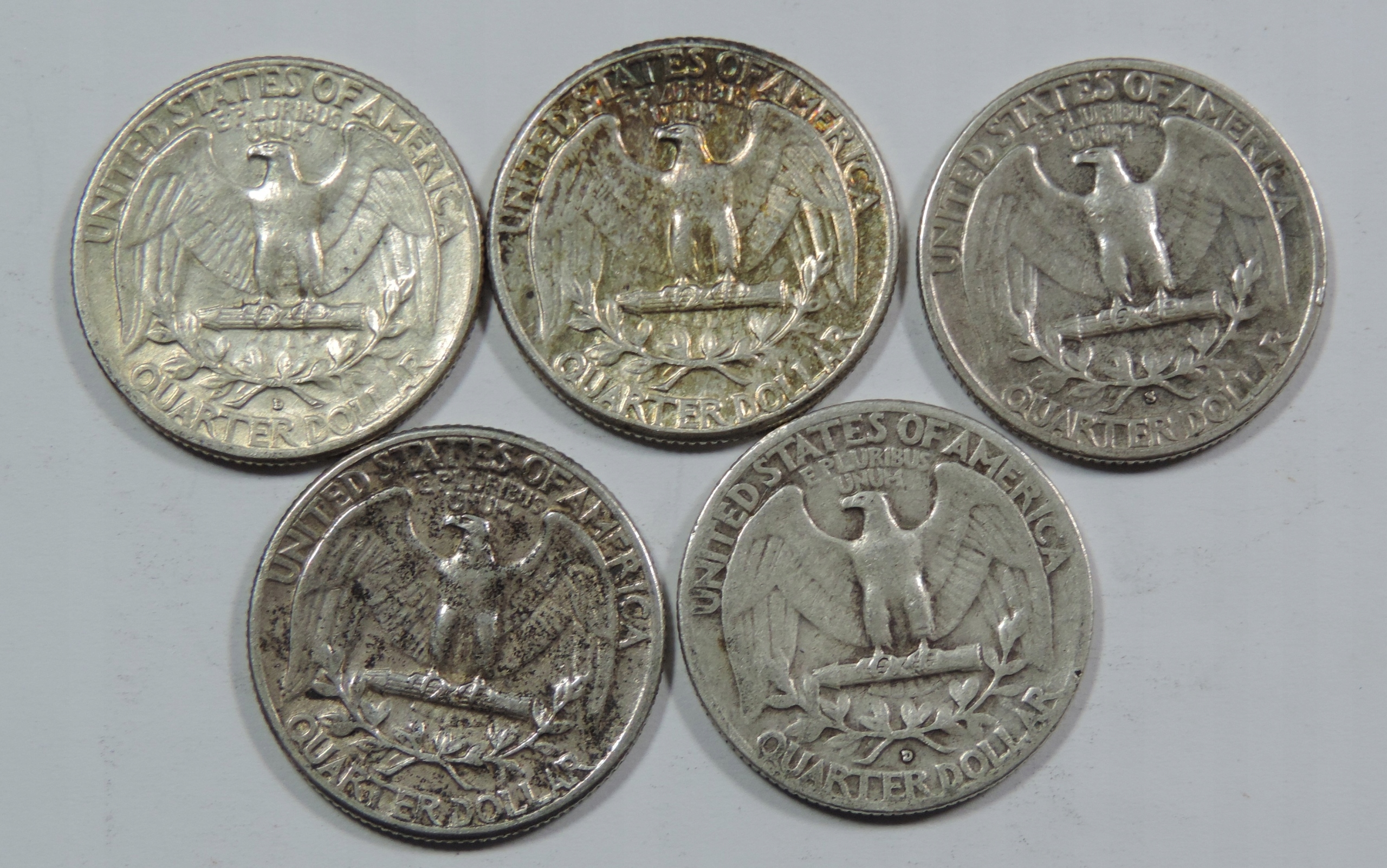 НАБІР 5x 25 ЦЕНТІВ - США - СРІБНІ МОНЕТИ - Ag COINS -OE5862