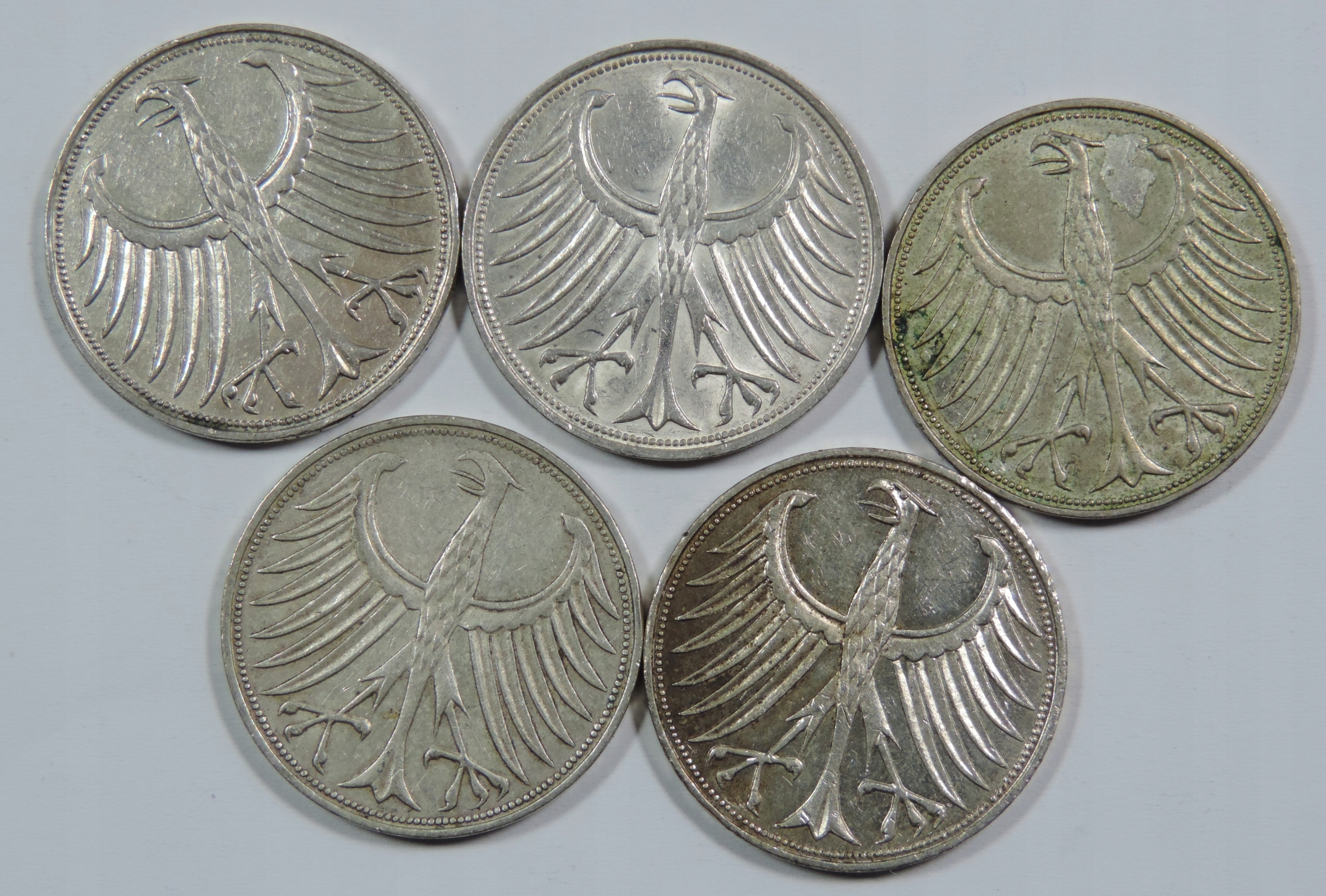 НАБІР 5x 5 МАРОК - НІМЕЧЧИНА - СРІБНІ МОНЕТИ - Ag COINS -OE5833