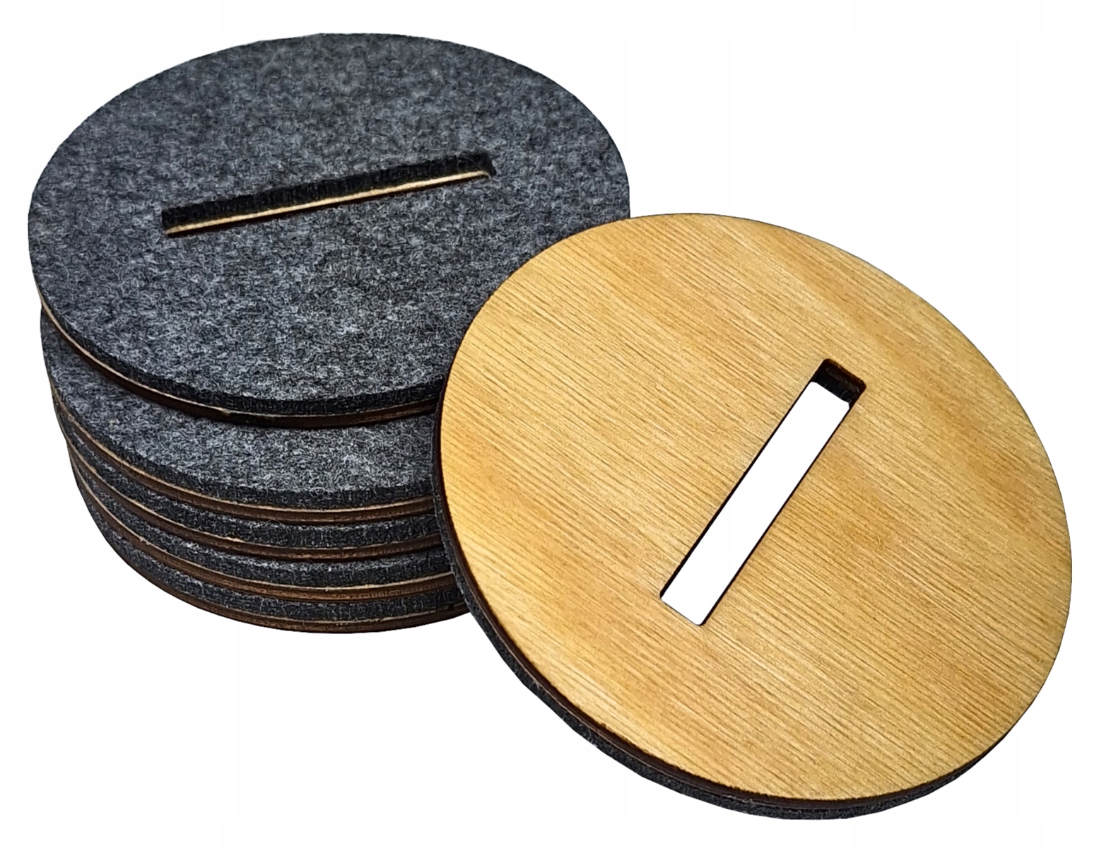 Набір 6 круглих підставок під чашки на дерев'яній підставці, фетр, фанера