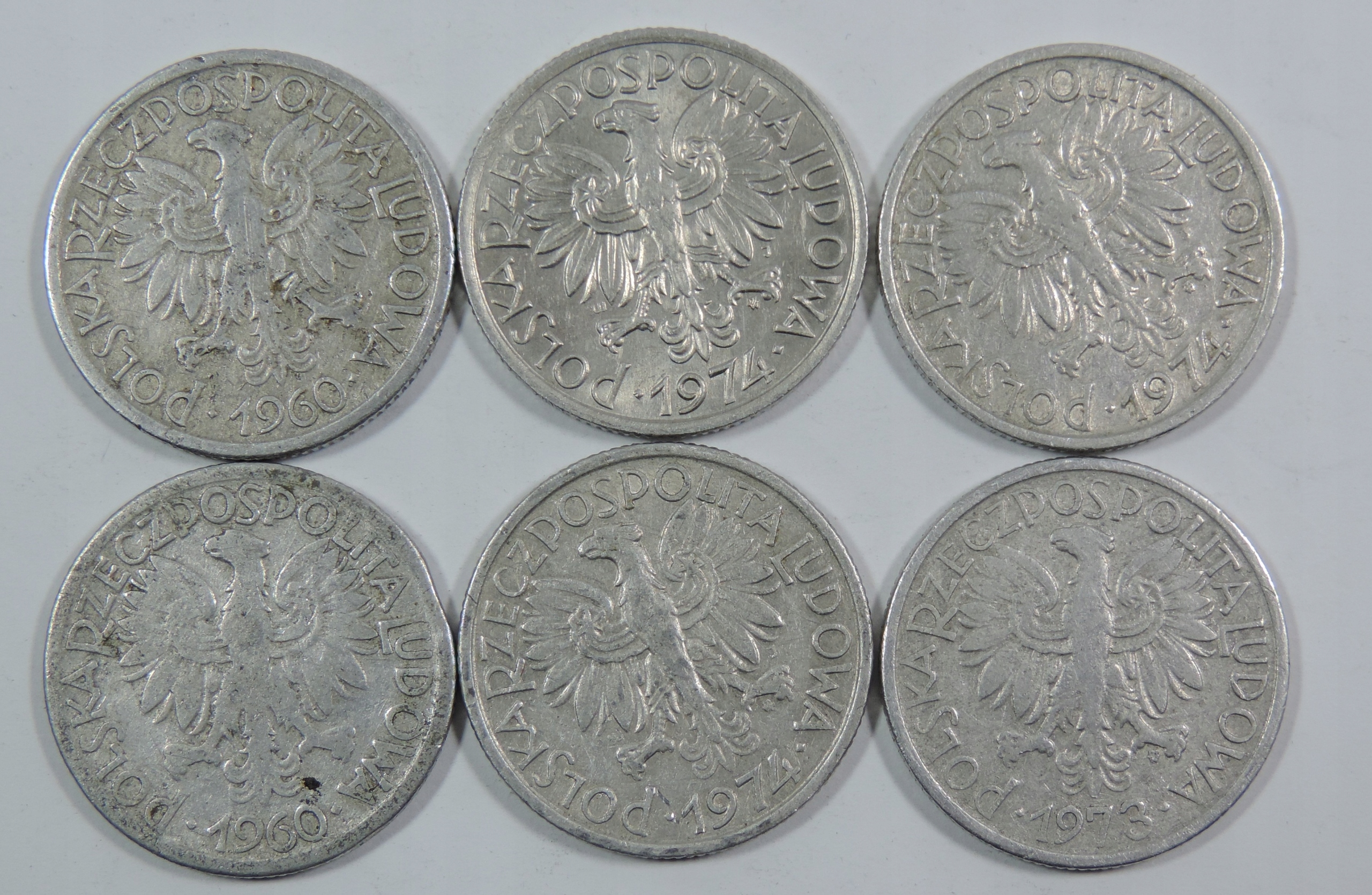 НАБІР 6 ОБРАТНИХ МОНЕТ - МОНЕТА PRL - 2 ЗОЛОТИХ ЯГОДИ - ПОЛЬЩА -OU1558