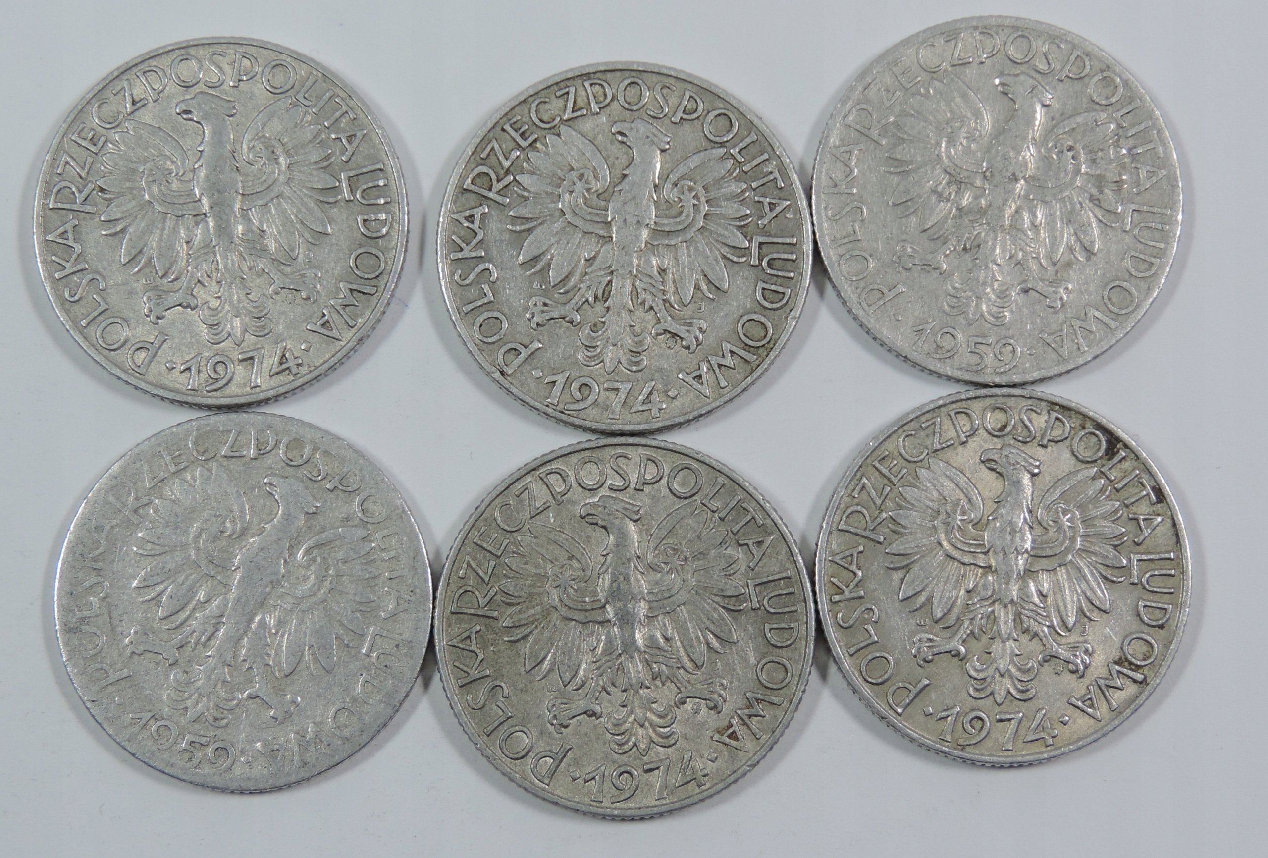 НАБІР 6 ОБРАТНИХ МОНЕТ - МОНЕТА PRL - 5 ЗЛОТИХ РИБАК - ПОЛЬЩА -OU1557