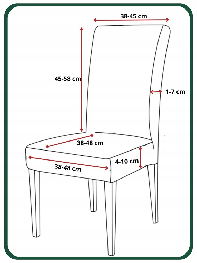 На малюнку нижче показано розміри стільців, до яких підходить наш чохол. Якщо ваше крісло на +- 2 см більше/менше - наш чохол все одно підійде!