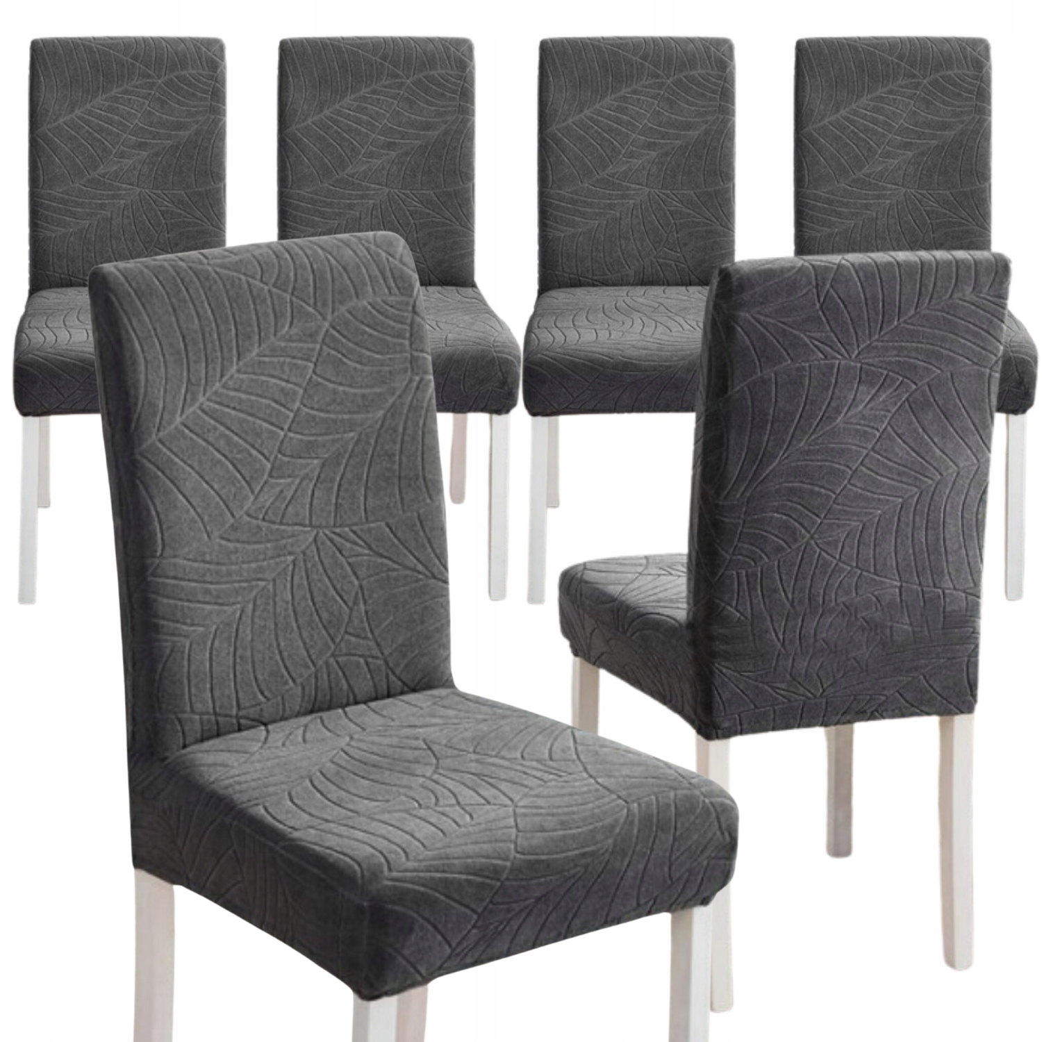 НАБІР 6 ШТ. ЧОХАЛ НА СТІЛЬЦЕ, ВЕЛЮР ТЕМНО-СІРИЙ, ВЗІЗУРКИ ЖАККАРДУ