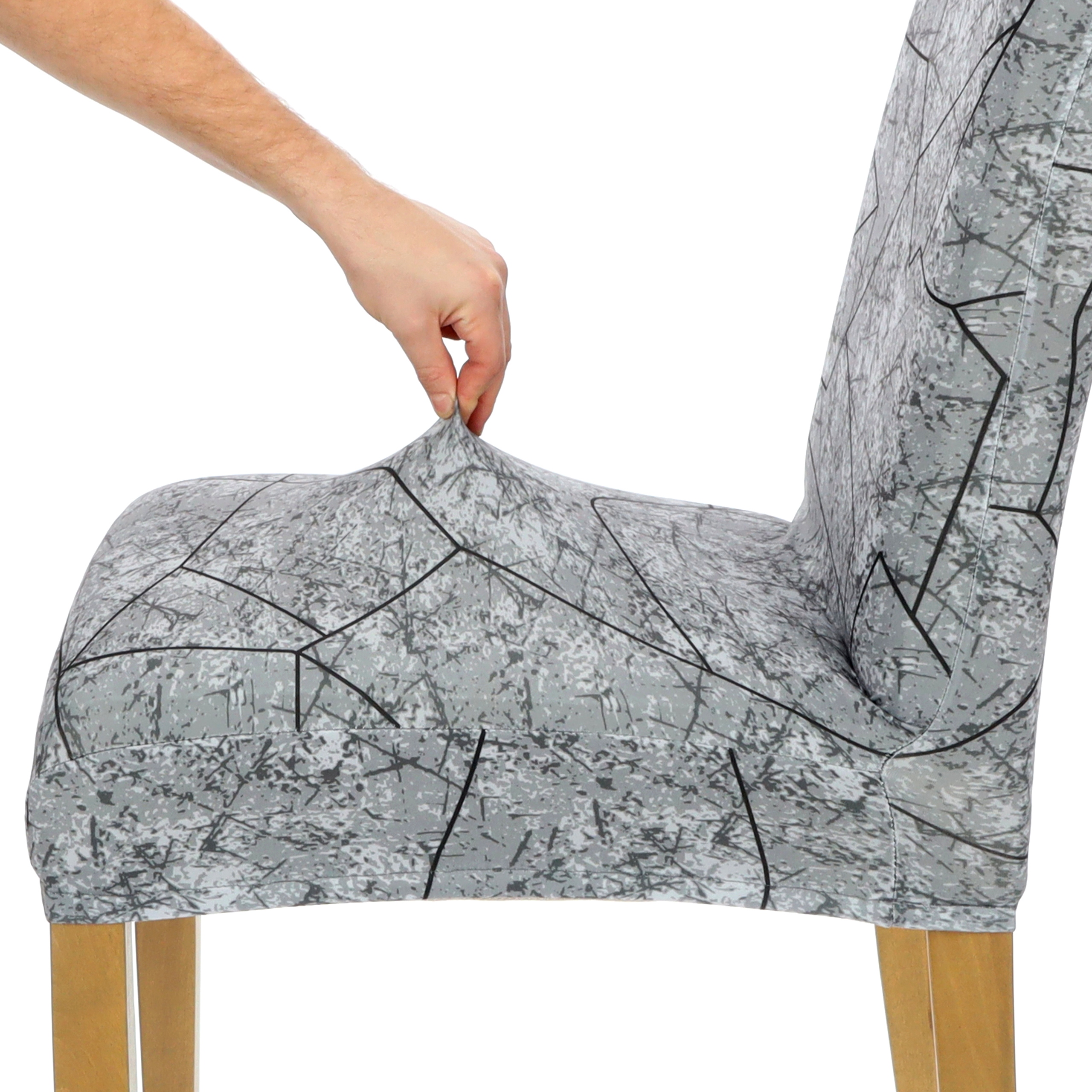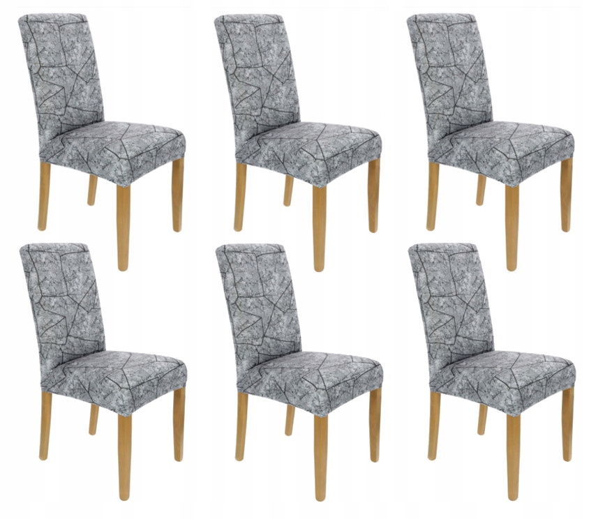 Чехол на стільці, сірий, еластичний, візерунки, 6 шт.