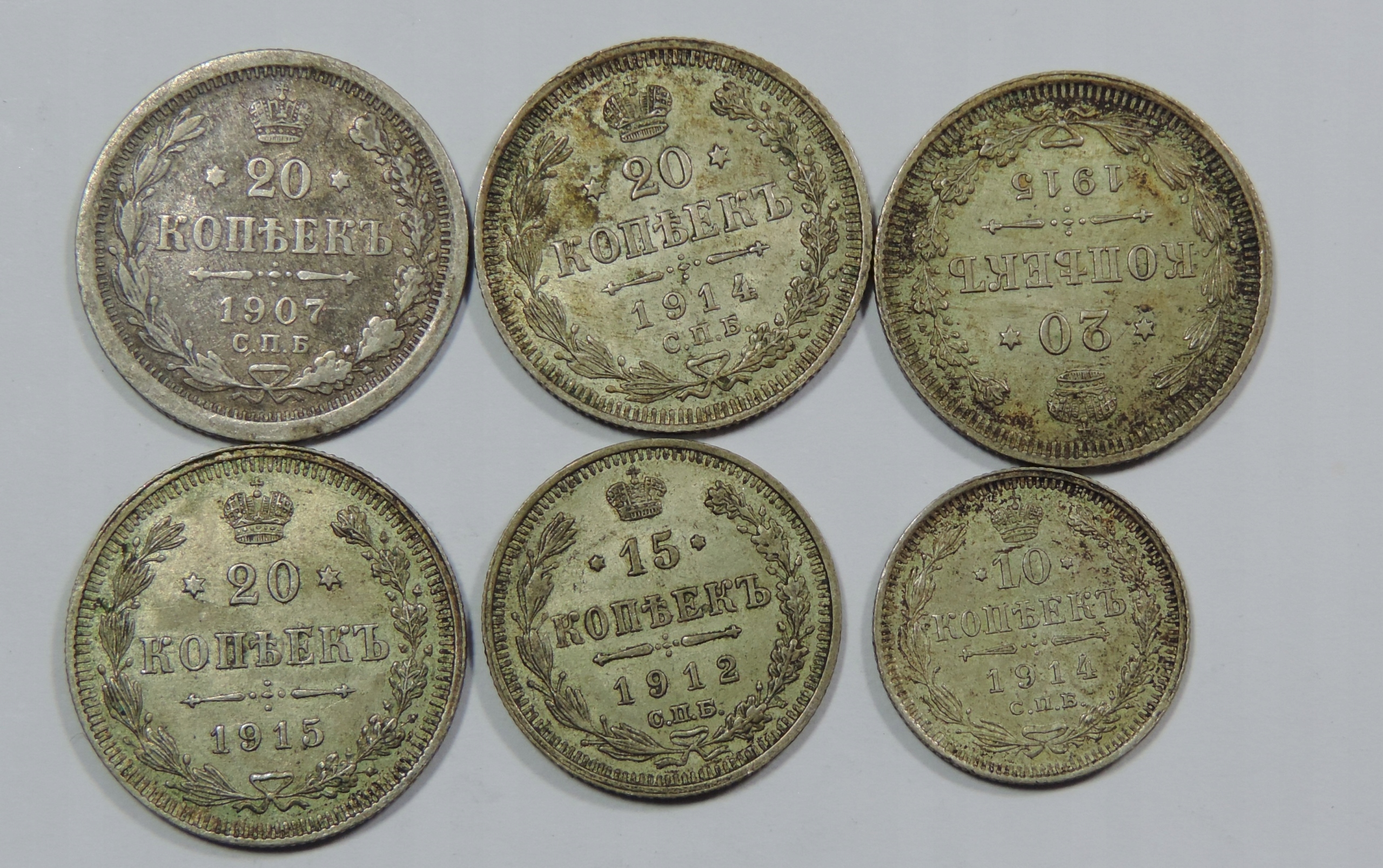 НАБІР 6x СРІБНА МОНЕТА - МОНЕТА Ag - КОЛЕКЦІЙНА - РОСІЯ -OU2604