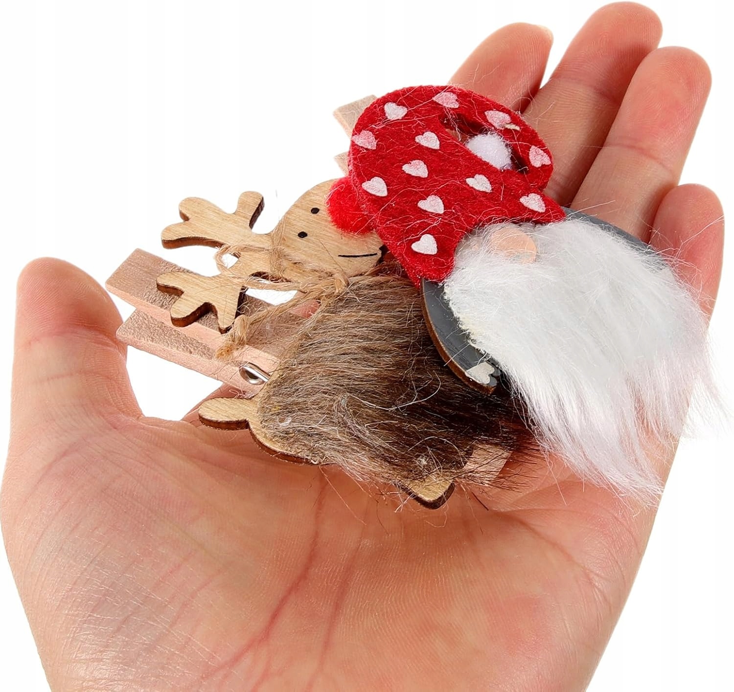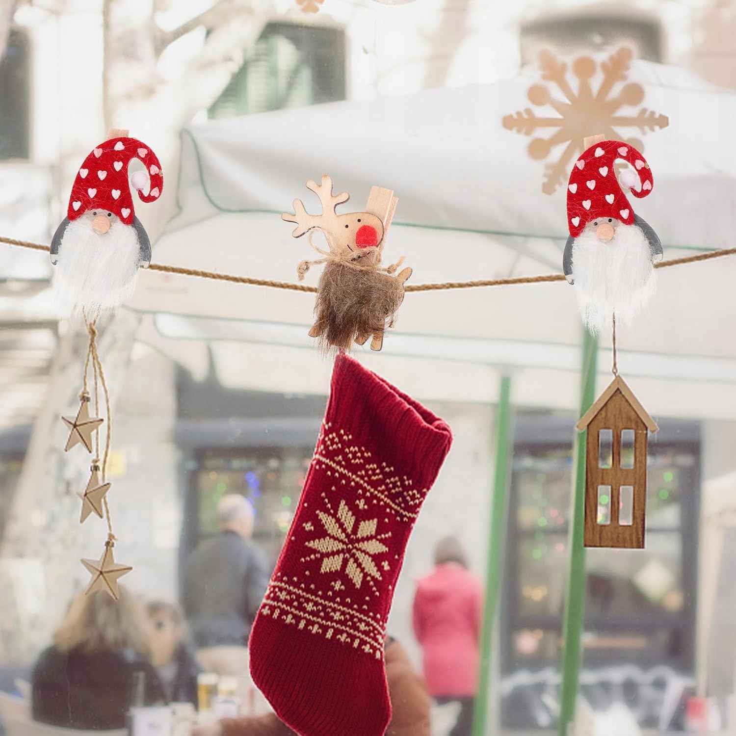 Набір включає 6 дерев'яних прищіпок - по 3 кожного дизайну. Чарівні різдвяні гноми ідеально підходять для кріплення різдвяних листівок, фотографій, подарункових листівок, прикрас або невеликих подарунків.