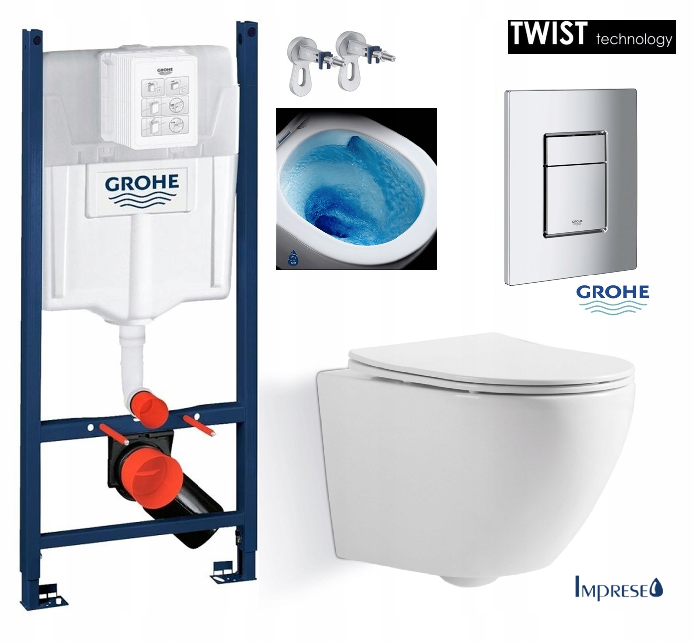 НАБІР 7 в 1 РАМА УНІТАЗУ, ЧАША TORNADO IMPRESE, СВІЖА ХРОМОВА КНОПКА